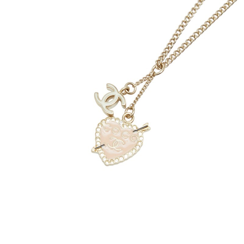 Brand: CHANELTarget: Women'sColor: Gold PinkLine: COCOmark Heart & Arrow RhinestoneSerial Number: 10PMaterial: Plated/EnamelSize: Total length: Approx. 42cmTop: Approx. W12.6mm x H15.5mmSize cannot be changedAccessories: Storage box, storage bag (main body)Condition Rank: A
