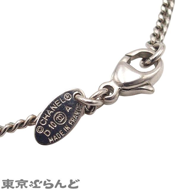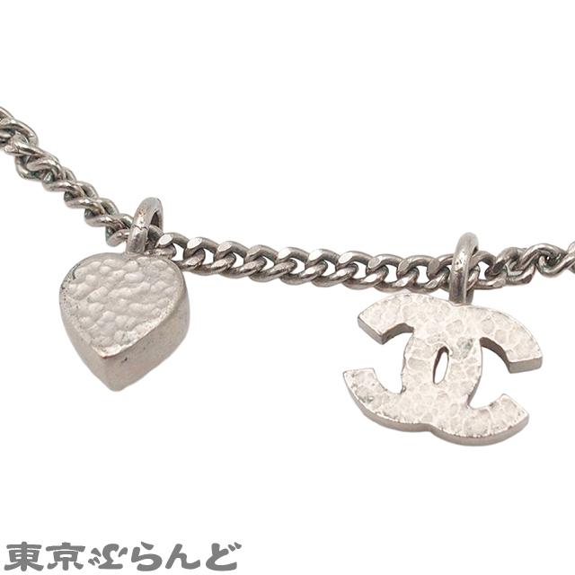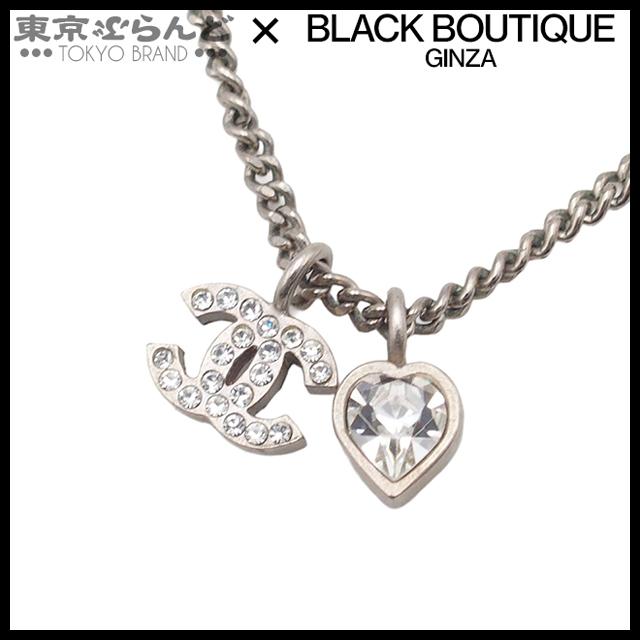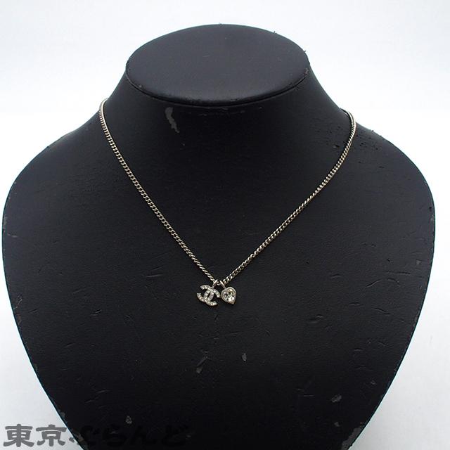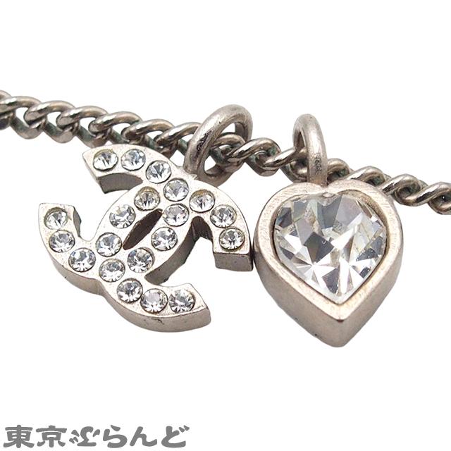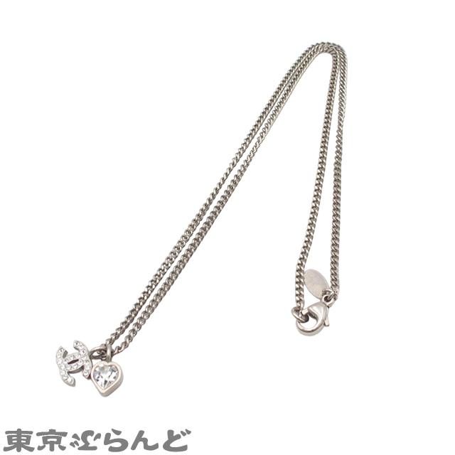 CHANEL Silver Metal COCOmark Heart Rhinestone Beaded Necklace D10A Women's