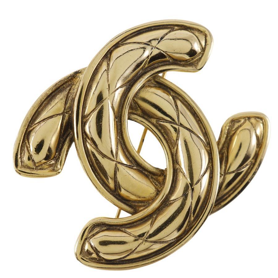 Pre-owned CHANEL COCOmark Matelasse Brooch, Gold Plated, Approx. 31.4g, Women's