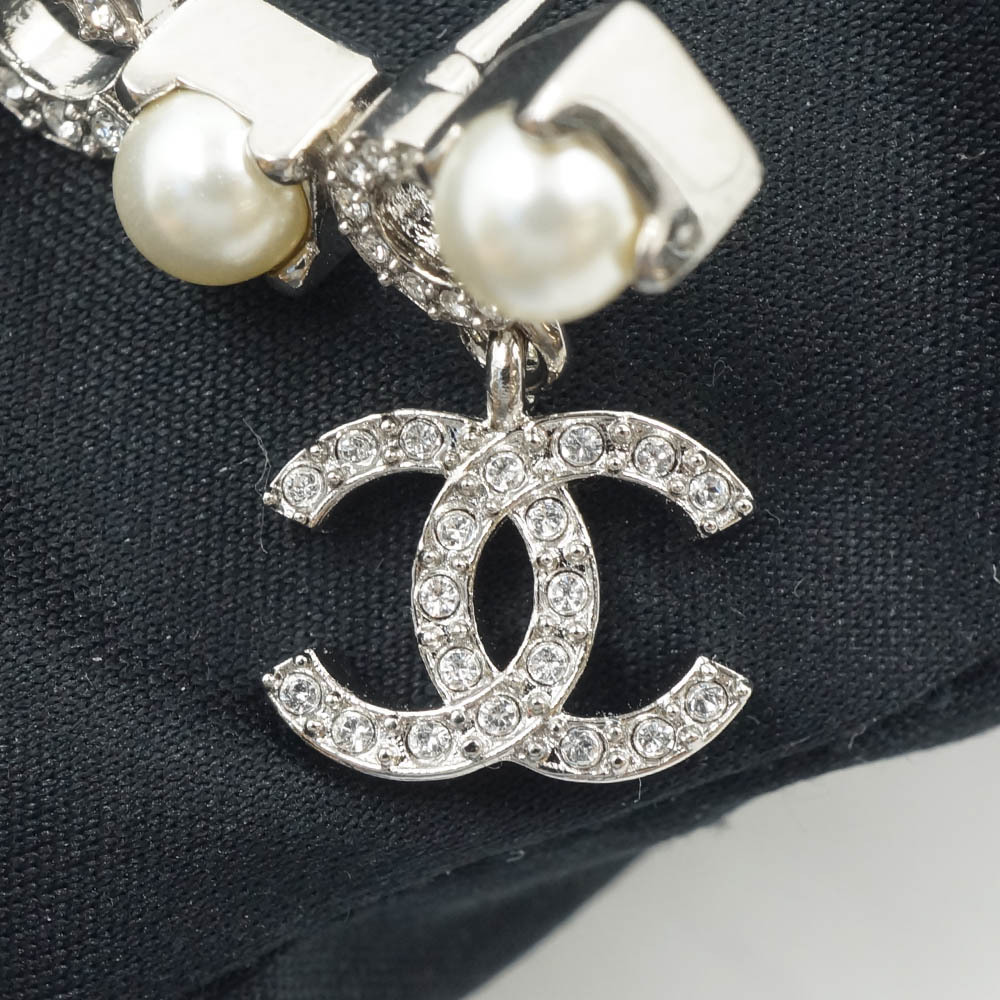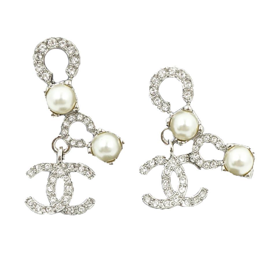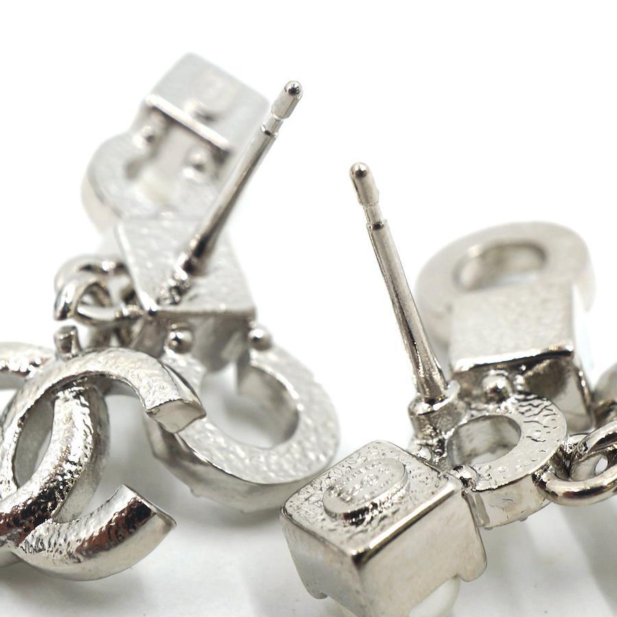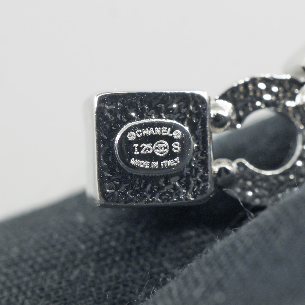 CHANEL ABF732 COCOmark Metal Pearl Strass Earrings, Silver, White, Accessory, Box