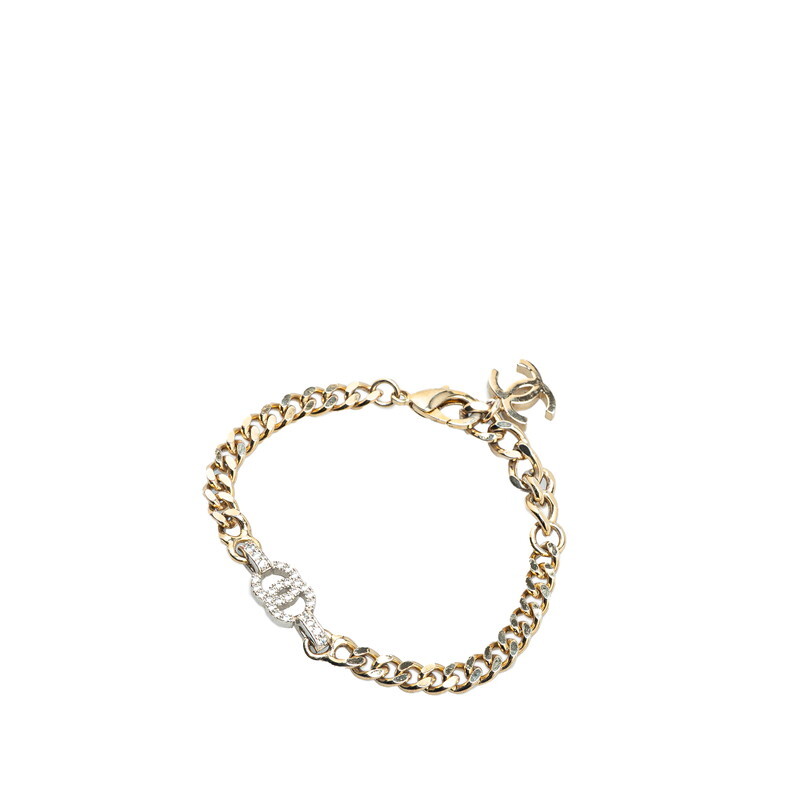 Chanel COCOmark Rhinestone Chain Bracelet, Silver Metal