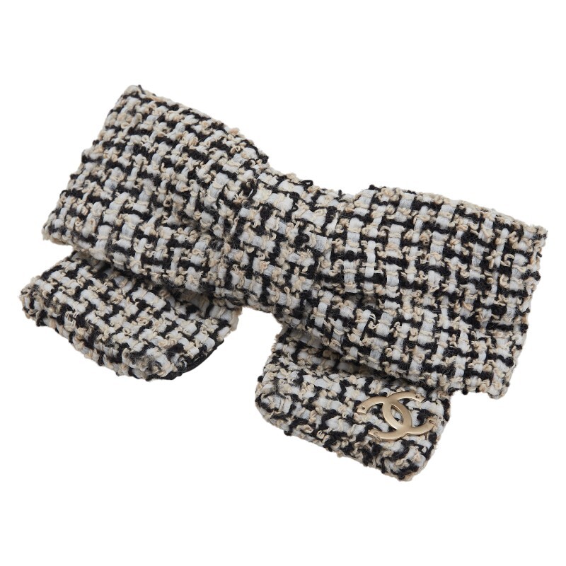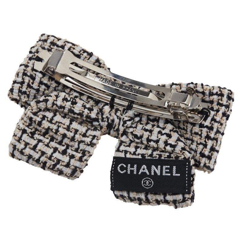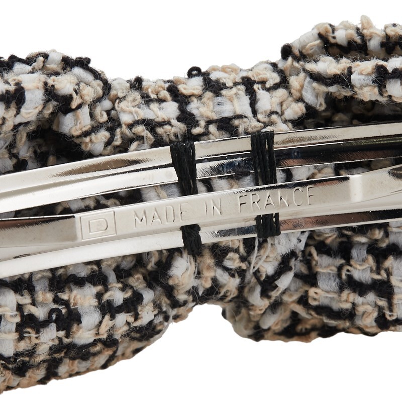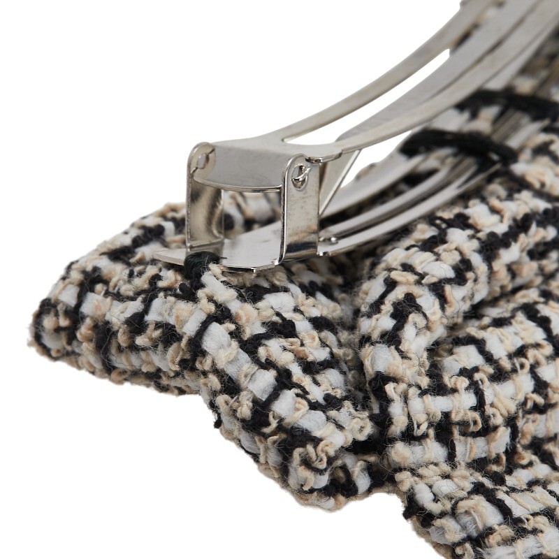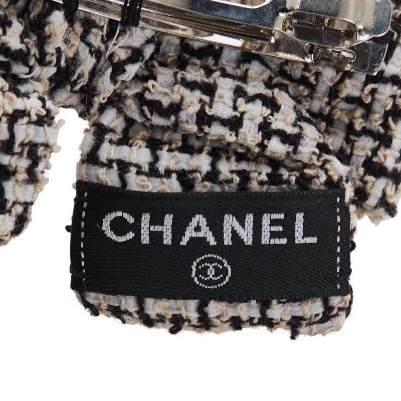 Chanel COCOmark Ribbon Barrette White Black Tweed