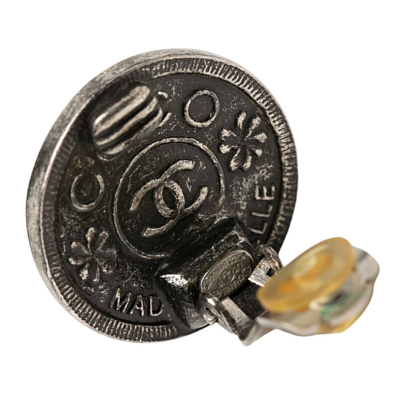 Chanel COCOmark Round Earrings, Silver MetalCHANELBrand: CHANELTarget: Women'sColor: SilverSeries: COCOmark RoundSerial Number: 03PMaterial: MetalSize: Approx. 21.9mm x 21.9mmSize cannot be changedAccessories: NoneCondition:Condition Rank: ABOverall: Verdigris stain on clasp