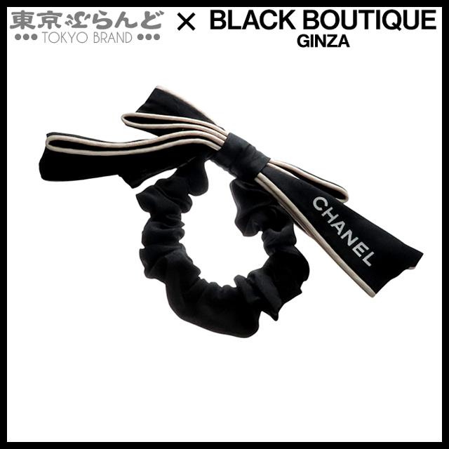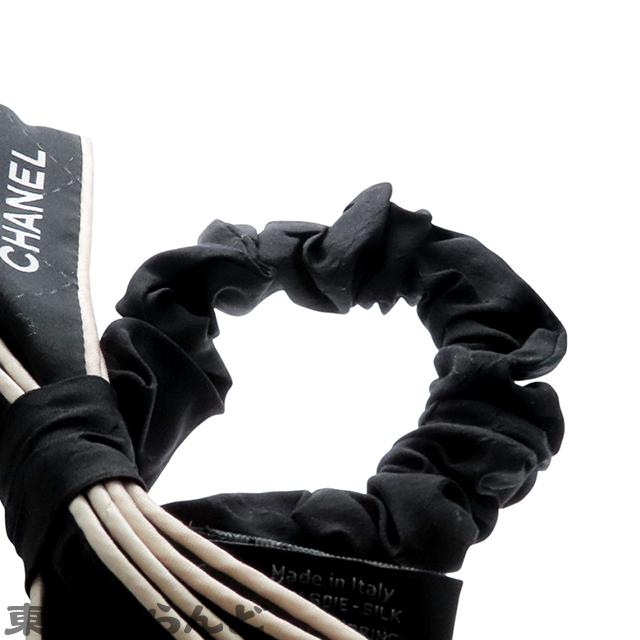 CHANEL COCOmark Silk Ribbon Scrunchie 23C Black Silk Acetate Hair Tie with Box