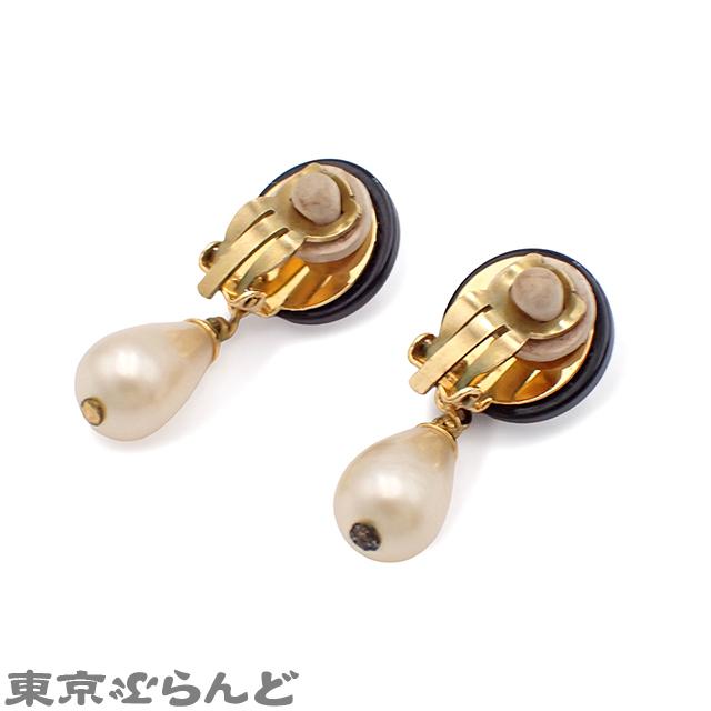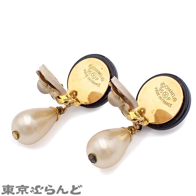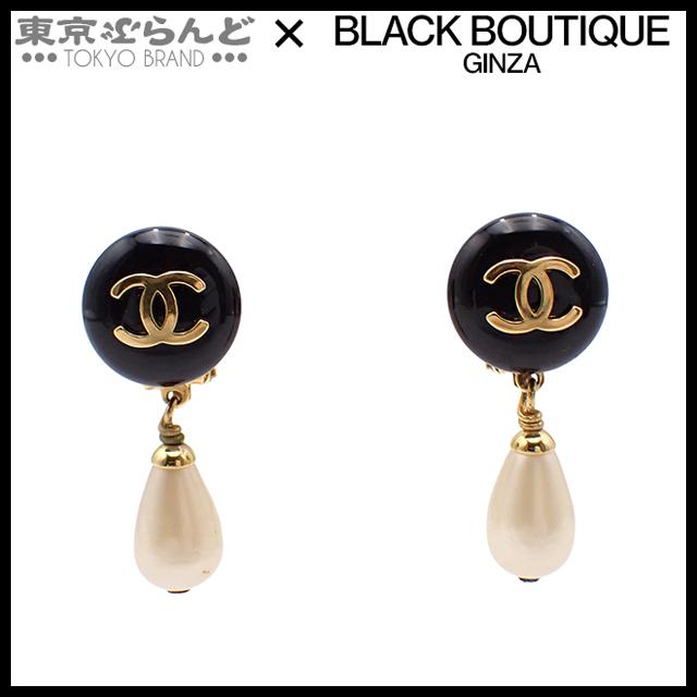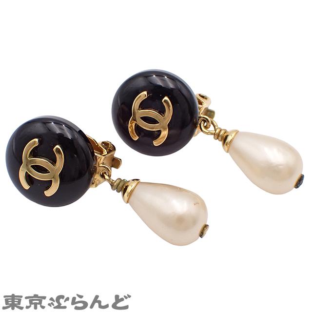 Chanel COCOmark Swing Teardrop Pearl Earrings, Black, Gold Hardware, 95 Pieces, Women's, Vintage