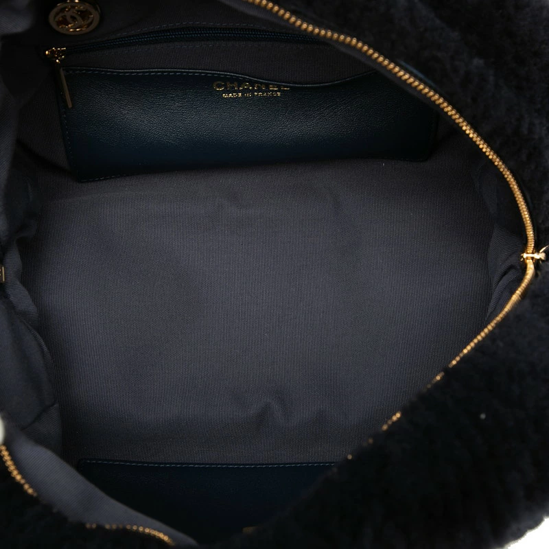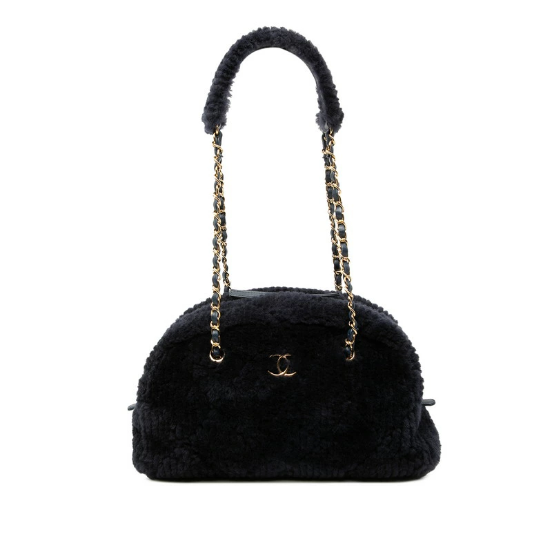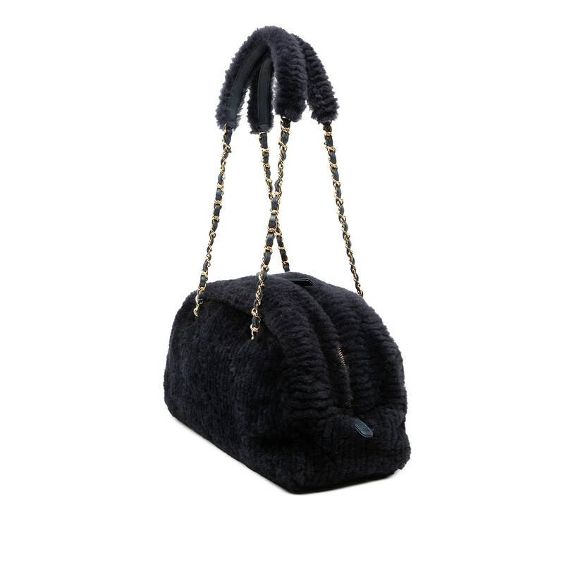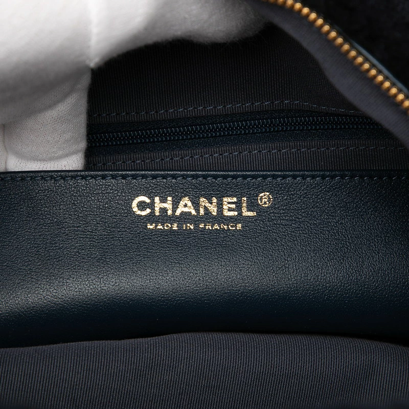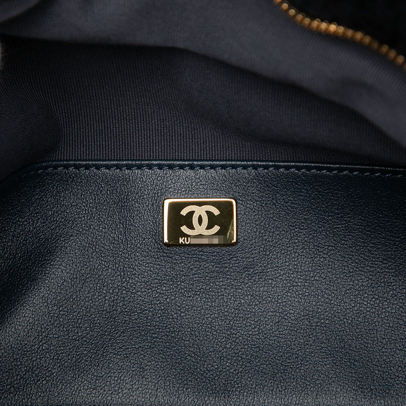 - シャネル ココネージュ ラージボーリングバッグ KU0AG62E ネイビー ゴールド金具 シアリング ラムスキン レディース CHANEL 【中古】