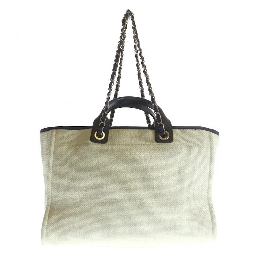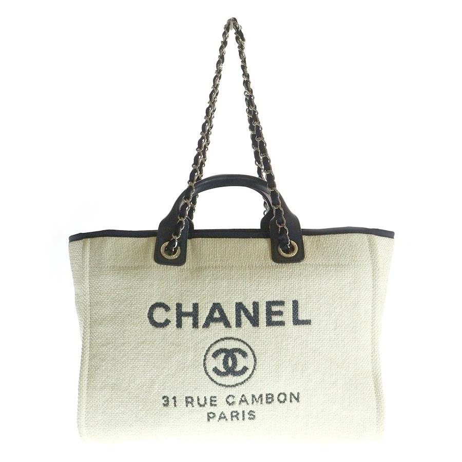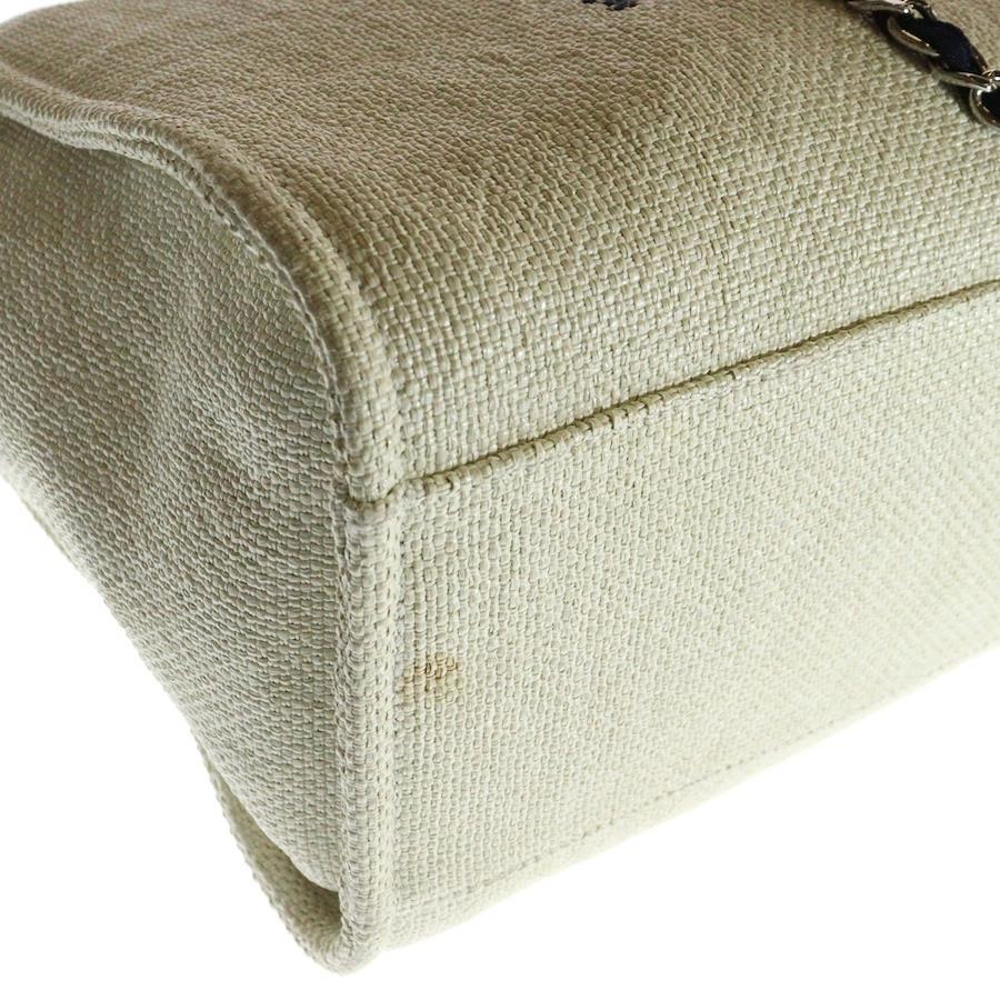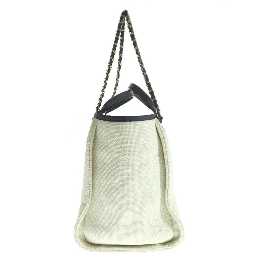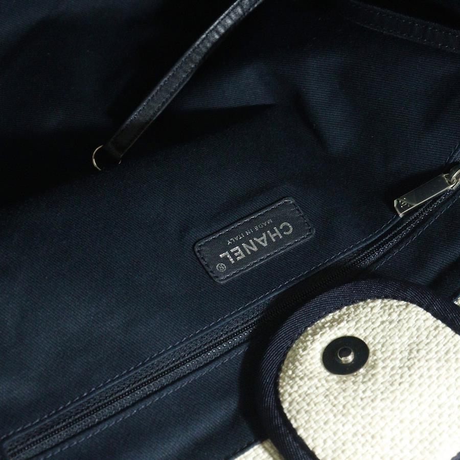[モデル]ドーヴィルGM トートバッグ ハンドバッグ ホワイト×ネイビー シルバー金具 ラフィア