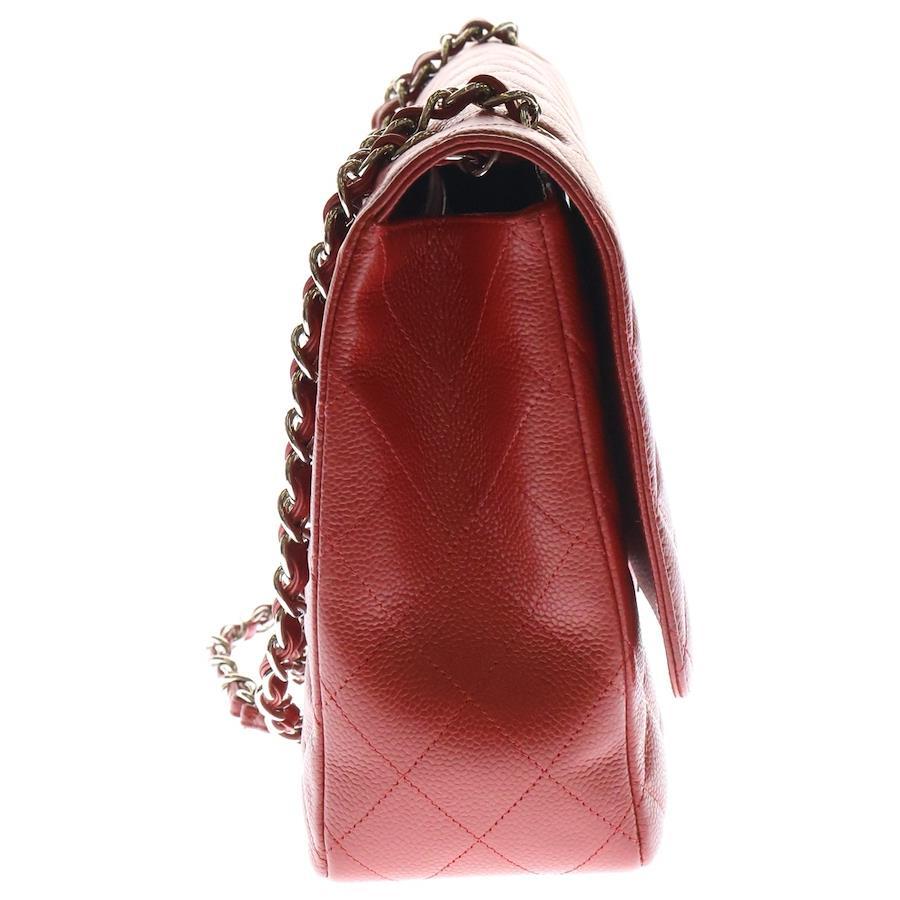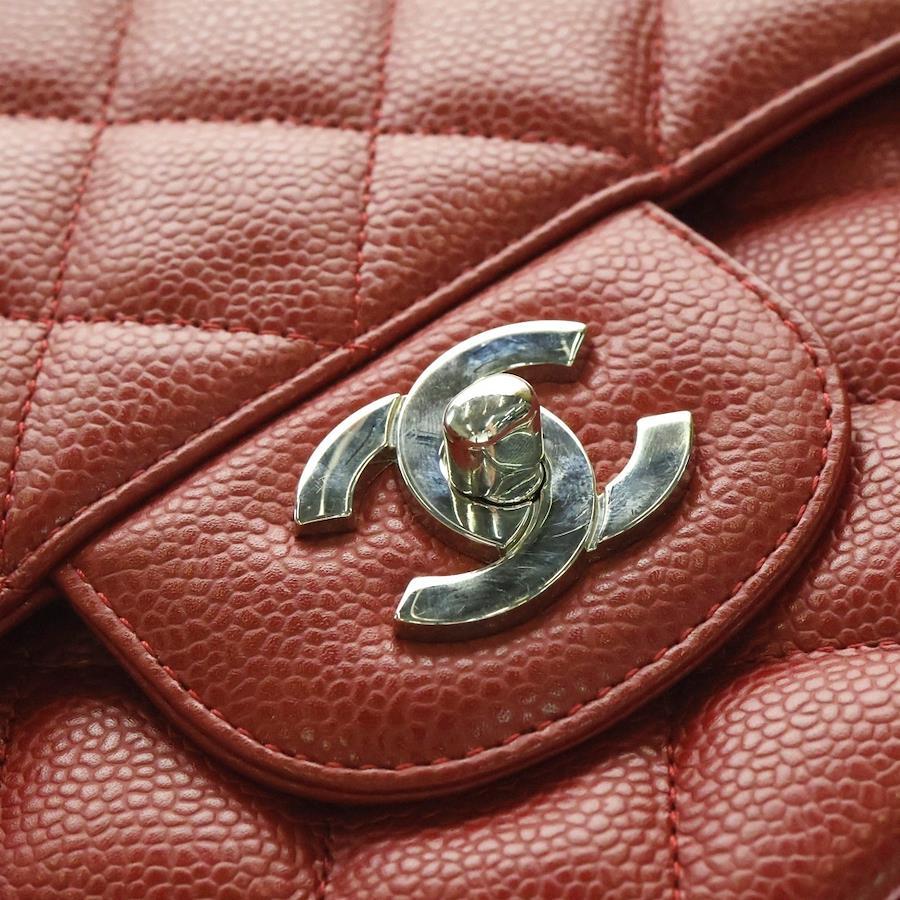 [モデル]デカマトラッセ34 マキシ ココマーク キャビアスキン ダブルフラップ ダブルチェーン ショルダーバッグ シルバー金具 レッド 13番台