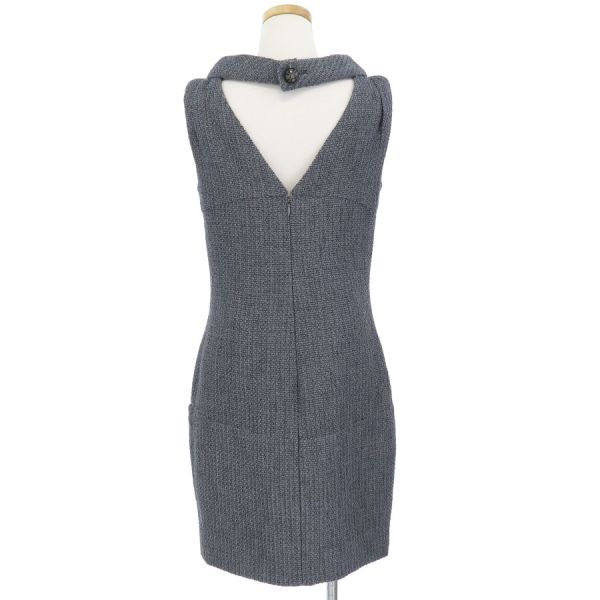 ■採寸#34 肩幅:35cm アームホール:46cm B:74cm 着丈:84cm■素材表地:ウール65% レーヨン15% コットン13% モヘア7%裏地:シルク100%■コメントシャネルからワンピースが入荷しました!グレーカラーのツイード生地で、背中が大胆に開いたデザインのノースリーブワンピース☆ボディラインが美しく見えるスッキリとしたタイトな形が素敵です!全体にツイード生地特有の起毛、裾に若干のスレ感、前身頃中央裾上13cm程の箇所に薄く茶色っぽい汚れ、裏地後ろ中心やサイドの縫製に伸び裂け、裏地脇や裏前襟などに薄汚れ,襟のヨレシワが見受けられる為Bランクでのご紹介となりました。表から目立つダメージはなくまだまだ問題なく着用いただけます。