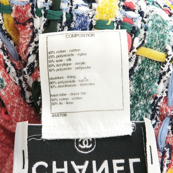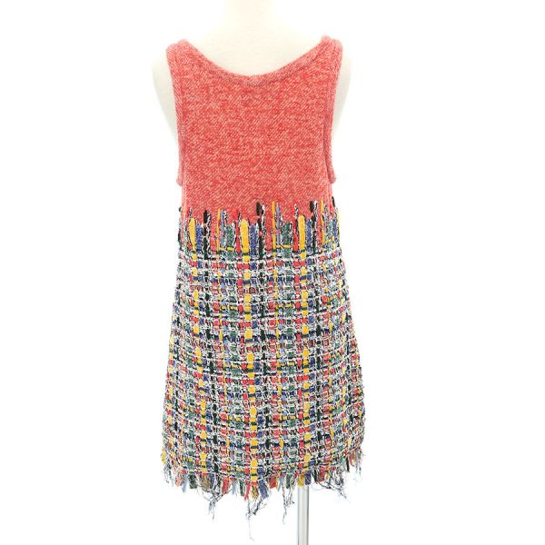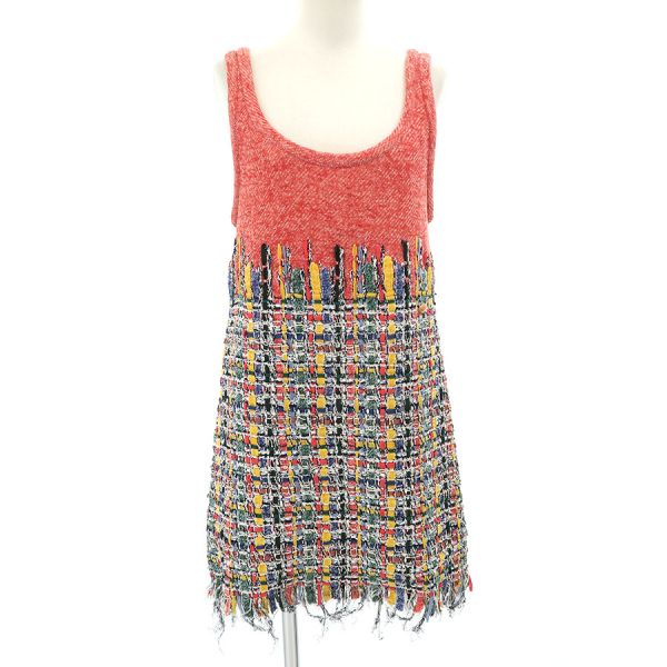 ■採寸#40 肩幅:31cm アームホール:56cm B:80cm 着丈:68cm(フリンジ除く)■素材コットン40% ナイロン25% シルク15% アクリル10% ポリエステル10% 裏地:ナイロン90% スパンデックス10% ドレストップ:コットン50% リネン50%■コメントシャネルからワンピースが入荷しました。鮮やかなカラフルカラーが特徴的なノースリーブワンピースです☆状態は全体に起毛感、フリンジの乱れ、品質タグほつれ等が見受けられますのでBランクでのご紹介です。目立つ汚れやダメージはないので、まだまだ問題なくご着用いただけます◎