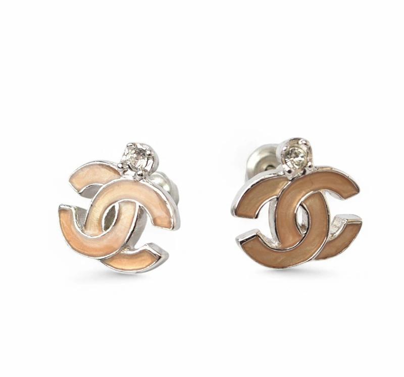 CHANEL ピアス CCマーク ラインストーン ライトピンク/シルバー