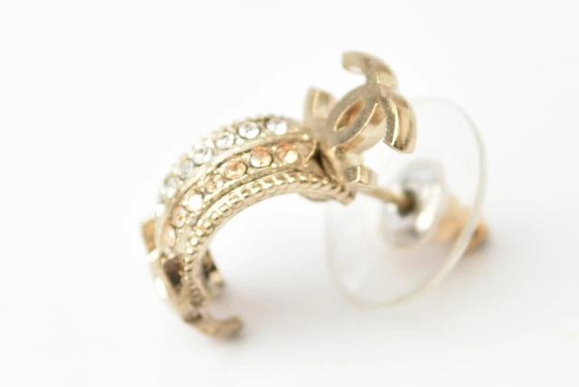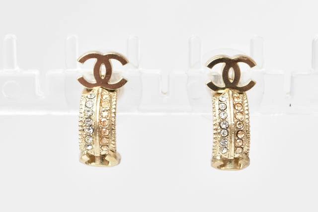 CHANEL ピアス ダブルCCマーク ラインストーン ゴールド/シルバー