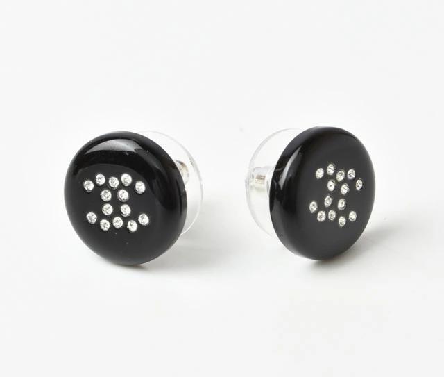 CHANEL ピアス CCマーク サークル/ラインストーン ブラック/シルバー