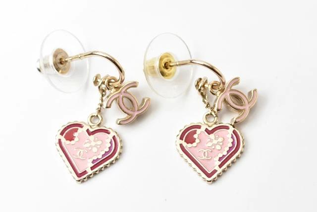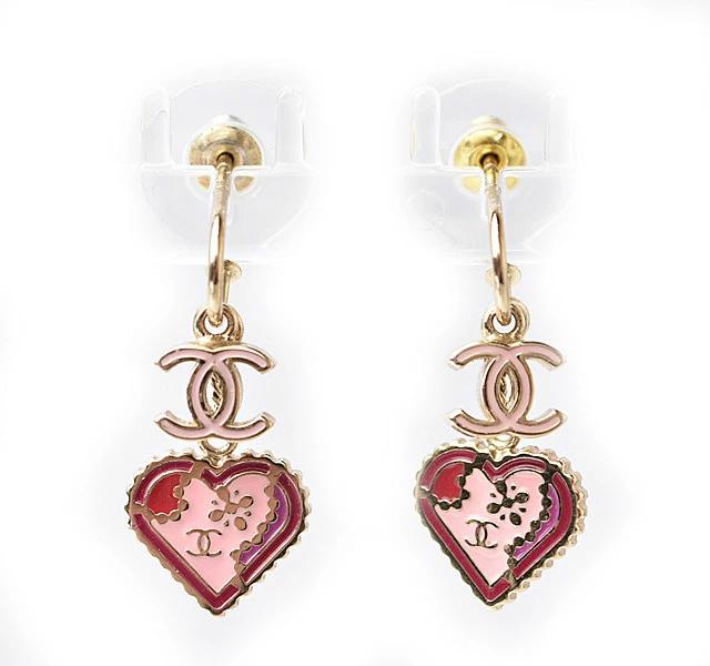 CHANEL スイングピアス CCマーク/ハートモチーフ ピンク/ゴールド