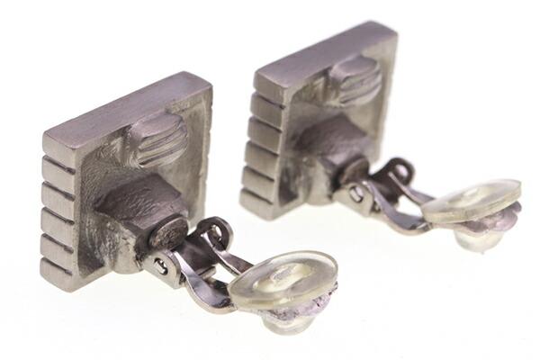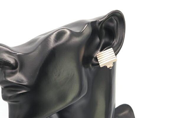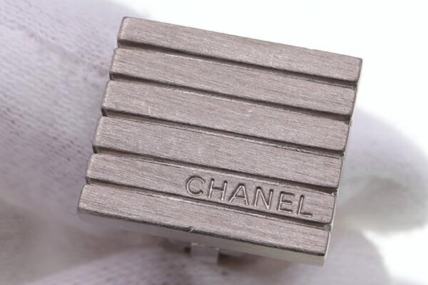 シャネルイヤリングシルバーメタル99A1999年モデル中古イヤーアクセサリースクエアストライプヴィンテージロゴレディースCHANEL