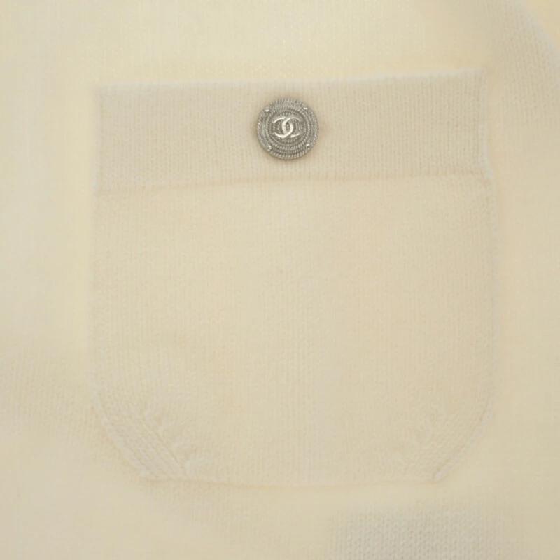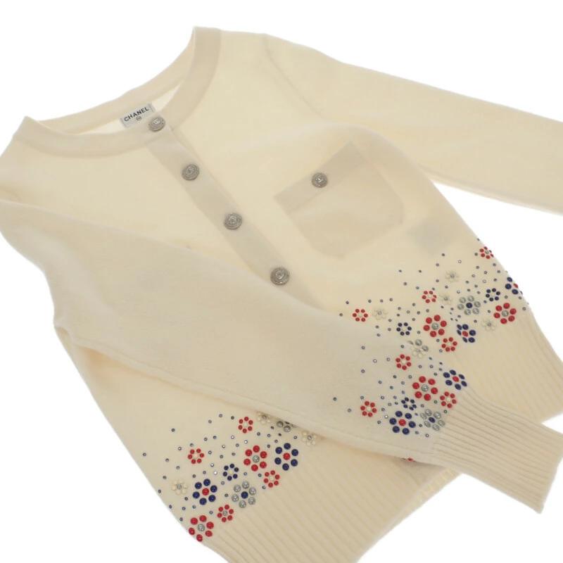 Chanel Flower Beads Cardigan, Size 34, P43016K04343_AW005, Cashmere, White, Women's, Floral Print, Pre-owned, Rank A