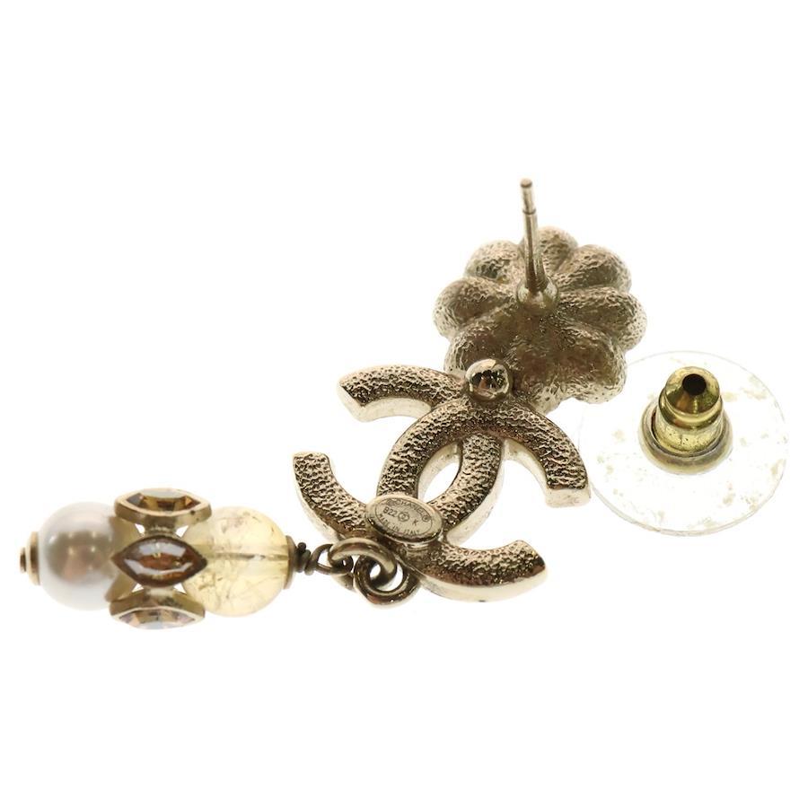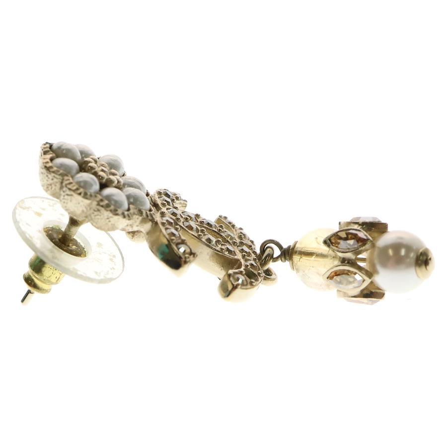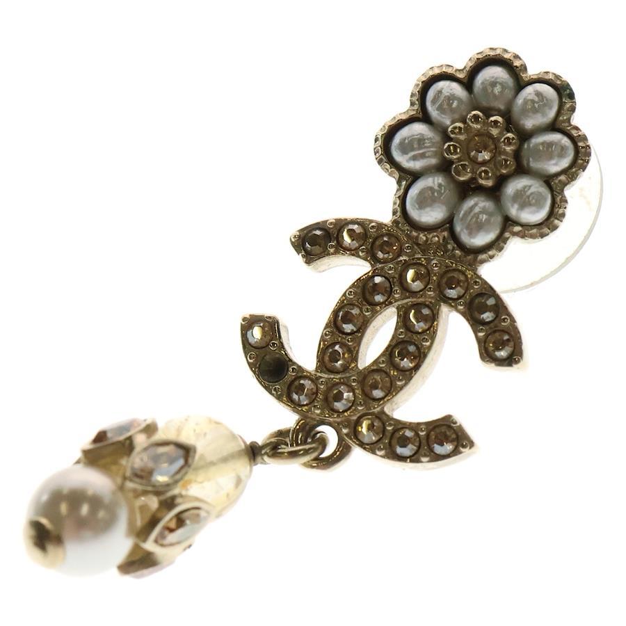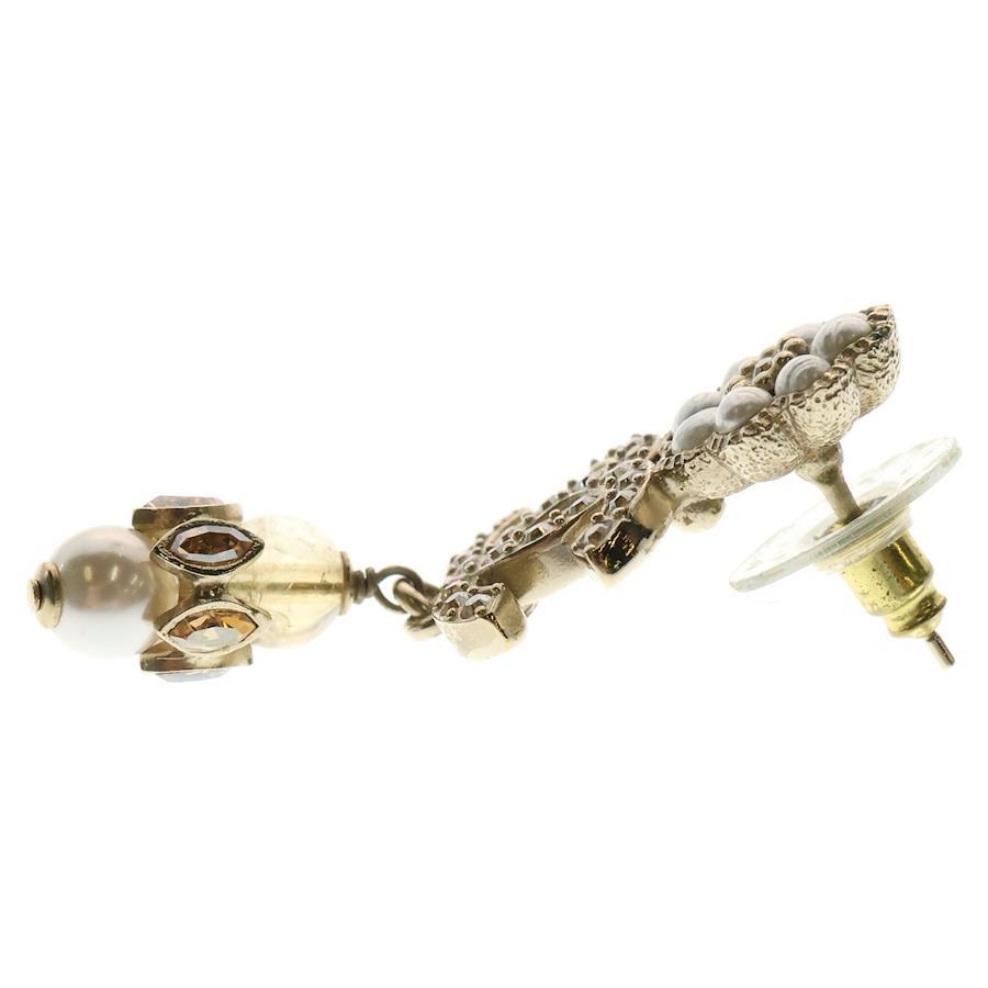 [モデル]フラワーココマーク ラインストーン装飾 パールピアス ゴールド レディース
