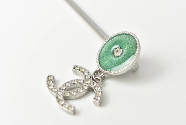 Chanel Hairpin/Kanzashi/Hair Accessory CHANEL Rhinestone Coco Mark Green/Silver [Used] [Reused Brand Coupon] Limited number available at participating stores!