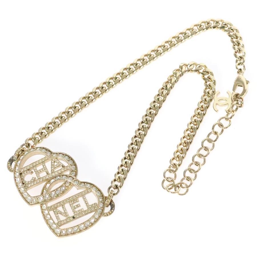 [モデル]ハート ラインストーン ロゴ ネックレス ゴールド GP アクセサリー