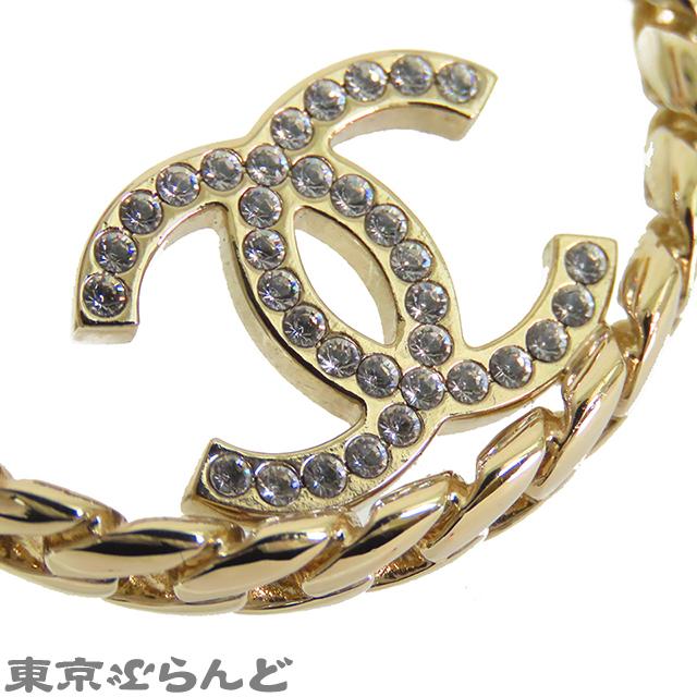 CHANEL Hoop Earrings, Gold Metal with Rhinestones and COCOmark Chain Motif, B24P GP, Women's