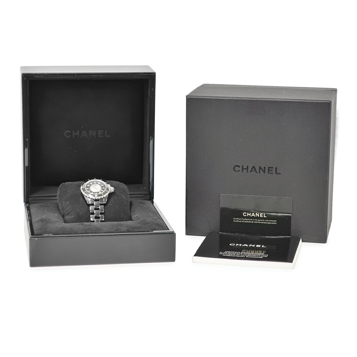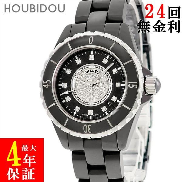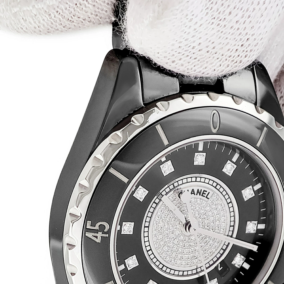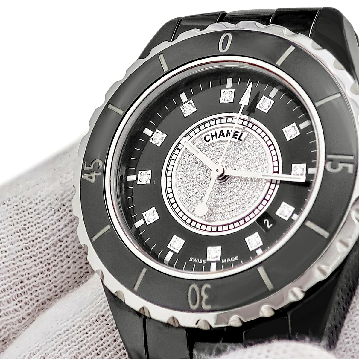 シャネル CHANEL J12 H2122 純正ダイヤ パヴェ 黒 ラウンド 回転ベゼル レディース 腕時計クオーツ ブラック 【中古】【店頭受取不可】
