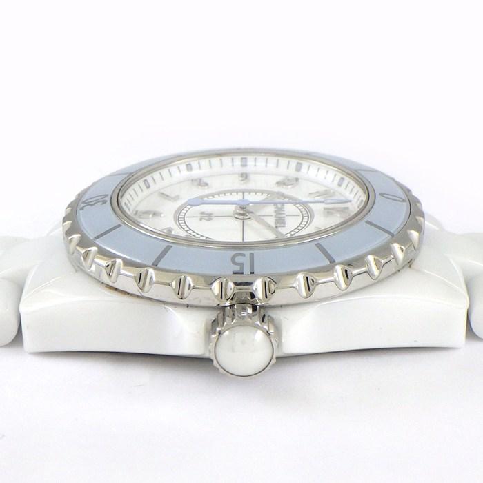 ■商品名CHANEL 腕時計 J12 H4340 ソフトブルー 世界1200本限定モデル デイト 回転ベゼル 夜光インデックス 夜光針 ホワイト文字盤 SS セラミック クオーツアナログ 【中古】