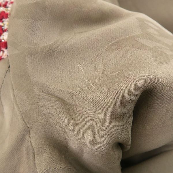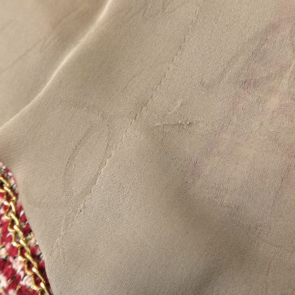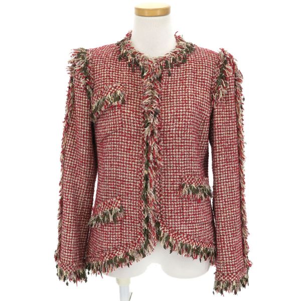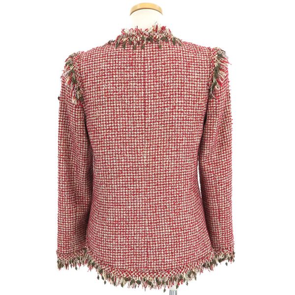 ■採寸#34 肩幅36cm 袖丈56cm B84cm 着丈60cm■素材ウール49% レーヨン28% ナイロン10% シルク8% ポリエステル3% 金属繊維2%裏地 シルク100%■コメントシャネルからジャケットが入荷しました!フリンジの先に葉っぱのモチーフがついたデザインのジャケットです。混在臭がし、フリンジに乱れやヨレ、裏地右裾上や左肩甲骨裏、右肩裏、裏地左鎖骨付近など裏地の所々に糸引きやスレ、ホツレ、全体にシワや収納跡、ヨレがみられるためBランク評価になります。使用感はありますが目立つような汚れやダメージはないのでご着用には問題ありません。