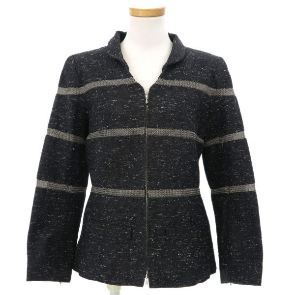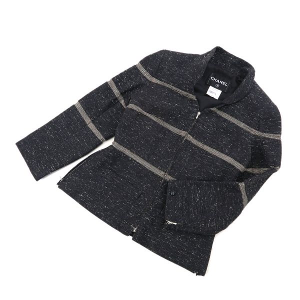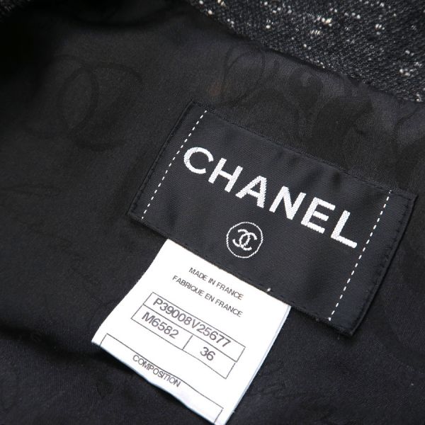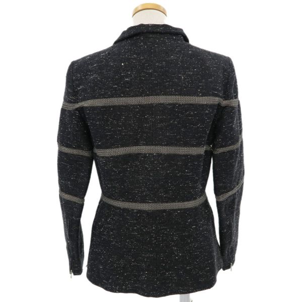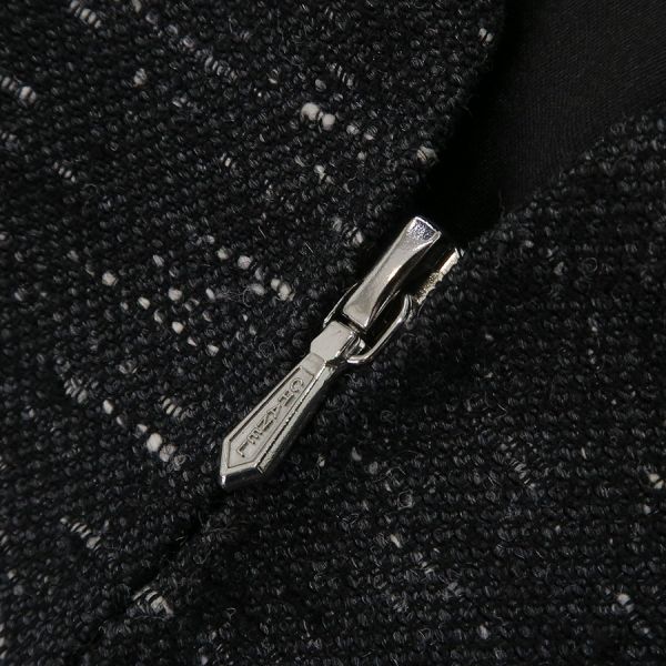 ■採寸#36 肩幅:36cm 袖丈:52cm B:80cm 着丈:57cm■素材表地:シルク65% ナイロン35% 裏地:シルク86% スパンデックス14%■コメントシャネルからジャケットが入荷しました!身頃や袖へ施されたライン状のメタリックチェーンが、シャープな印象を演出するオシャレなジャケット☆両袖や両サイド裾には20cm弱のジッパーが施されており、ジッパーを開くことでスリットの様な動きや、フォルムの変化が加えられて素敵です!袖先や裾・ジッパー全体の両サイドに白スレ、襟タグ上に茶色の汚れ、左袖内側裏地に茶色の汚れ、右ポケット下などポケット周りに若干の茶色の点汚れ、全体に気にならない程度のネップの様な細かい毛玉、脇下や袖の身頃側などスレやすい箇所に起毛やスレ感が見受けられる為Bランクでのご紹介となりました。全体にややスレ感があるものの、着用時に目立つダメージや汚れはございませんので、まだまだ問題なくご着用いただけます◎