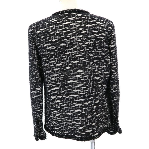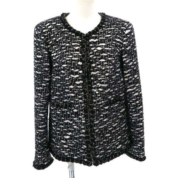 ■採寸#40 肩幅:40cm 袖丈:56cm B:94cm 着丈:56cm■素材表地:ウール68% ポリエステル32% 裏地:シルク86% スパンデックス14%■コメントシャネルからジャケットが入荷しました!ブラック×ホワイトでシックなデザインの、シャネルらしいノーカラージャケット☆前にボタンはなく、ホックで留めるタイプとなっております!全体に起毛、脇下に強いスレや毛羽立ち、両袖身頃側に毛羽立ち、前中央襟下左右に茶色の小さなシミ、袖先のスレ汚れや毛羽立ちが見受けられる為Bランクでのご紹介となりました。全体に生地のスレ感や毛羽立ちが強めとなっておりますが、ちょっとした普段着としては問題なくご着用いただける程度かと思います◎