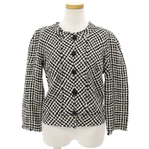 ■採寸#36 肩幅:38cm 袖丈:47cm B;80cm 着丈;44cm■素材レーヨン44% シルク23% コットン21% ナイロン9% アクリル3%■コメントシャネルからジャケットが入荷しました。千鳥柄にココマークボタンが素敵です☆状態は全体に毛羽立ちやフリンジ、袖口に乱れやヨレ・シワ・ほつれ、前身頃右下や中央にピンクのシミ、裏脇の汚れ、後襟辺りに茶色のシミ汚れが全体に所々に見受けられますが、目立つ汚れやダメージはないのでまだまだ十分にご着用いただけます。