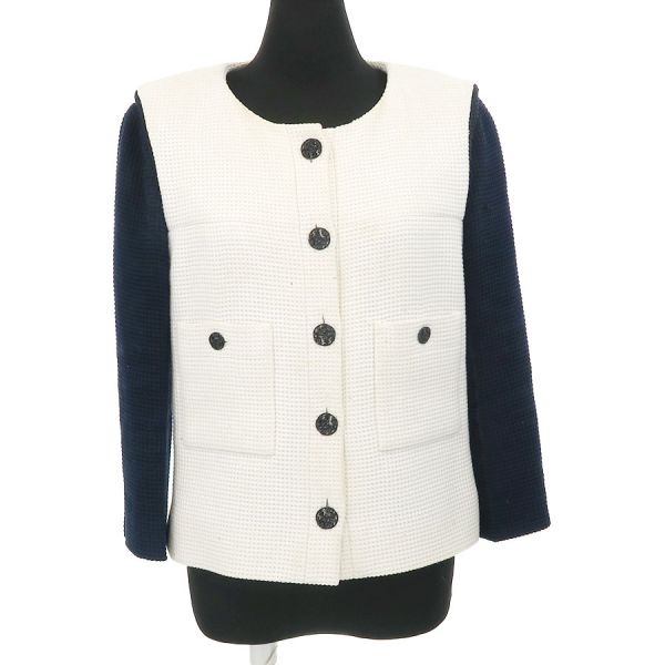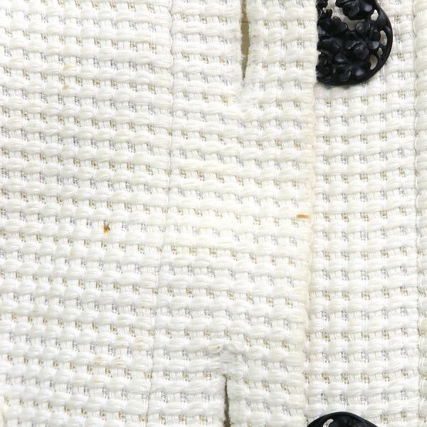 ■採寸#38 肩幅:39cm 袖丈:49cm B:94cm 着丈:52cm■素材コットン94% レーヨン5% ポリエステル1% 裏地:シルク100% インセット:コットン97% レーヨン2% ポリエステル1%■コメントシャネルからジャケットが入荷しました。シャネルならではのカメリアボタンが素敵なジャケットです☆状態は前身頃中央・右裾・左裾・後身頃右下に所々シミ汚れ、両脇下に汗ジミ、前身頃裏地にシミ、後ろ襟周りに汚れ、左袖に糸飛び等が見受けられますのでCランクでのご紹介です。普段着としてはまだまだ問題なくご着用いただけるお品です◎