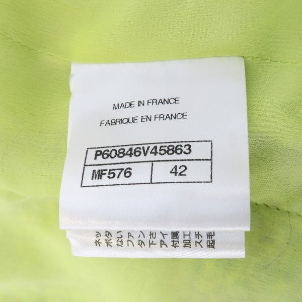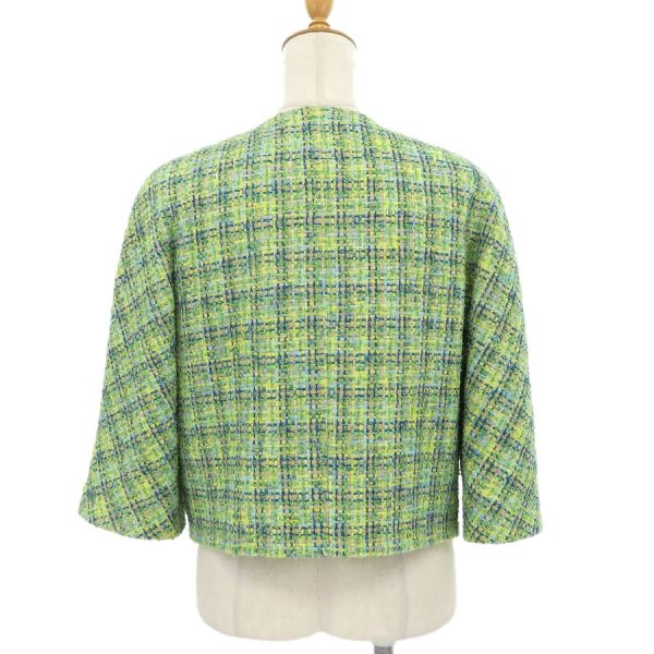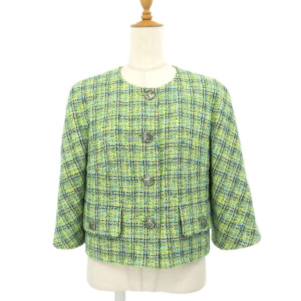 ■採寸#42 裄丈63cm B96cm 着丈47cm■素材コットン51% ポリエチレン27% ポリアミド15% シルク7%裏地 シルク100%■コメントシャネルからジャケットが入荷しました!襟山や袖裏に茶色い汚れ、後ろ身ごろ裏地肩甲骨付近に汚れ、裾裏に糸引き、ボタンに小キズやスレ、くすみ、全体にシワや収納跡、ヨレがみられるためBランク評価になります。