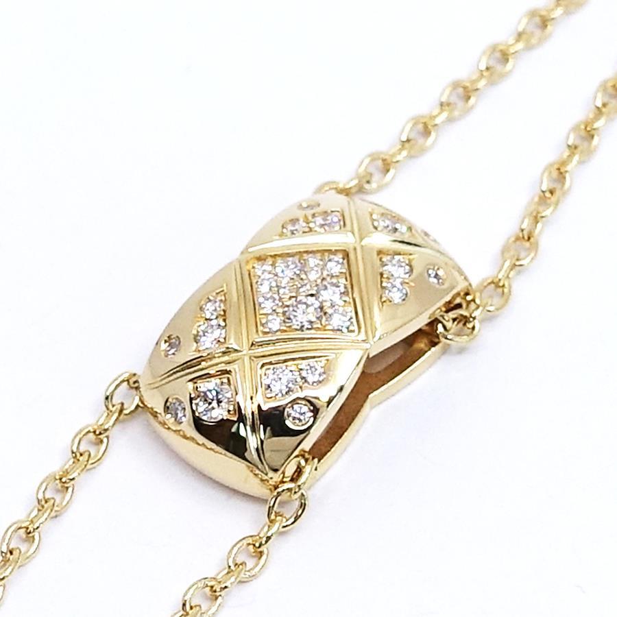 Product Rank: AProduct Condition: This item has been refinished at our designated workshop, so there is no noticeable damage and it is in excellent condition.While we handle this item with the utmost care, as it was displayed in a store, there may be very slight scratches or scuffs.Please view the images and feel free to contact us with any questions.*The texture and color may appear different from the actual product depending on the shooting environment and your monitor settings.Brand: CHANELProduct Name: COCO CRUSH Pavé Diamond Necklace PendantModel Number:Line:Serial No.:Stamp:Size: Necklace: Approx. 37cm-38.5cm-40cmTop: Approx. 13.8mm x 7.7mm*Please note that measurements are taken manually, so slight variations may occur.Weight: Approximately 7.1gMaterial: 18K Yellow Gold (K18YG)DiamondColor: Yellow GoldMovement:Suggested Retail Price:Specifications:Accessories: Watch only*All items shown in the photo are included.