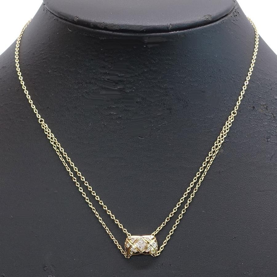 Chanel 18K Yellow Gold COCO CRUSH Pavé Diamond Necklace 750YG Jewelry for Women
