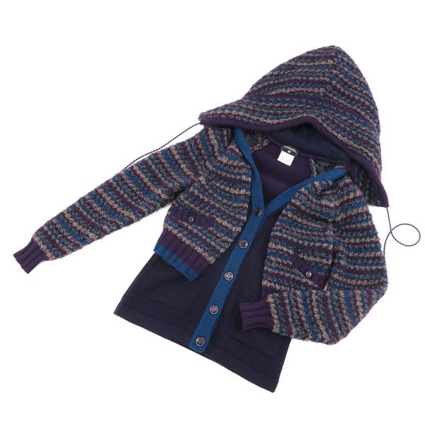 ■採寸#34 肩幅:34cm 袖丈:84cm B:80cm 着丈:53cm■素材カシミヤ76% ナイロン15% レーヨン7% シルク2%■コメントシャネルからニットジャケットが入荷しました。状態は全体的に生地特有の起毛感・毛羽立ち、ボタンにヒビ、左フードストラップ紐にラメ糸のほつれ等が見受けられますが、目立つ汚れやダメージはないので、まだまだ問題なくご着用いただけます。