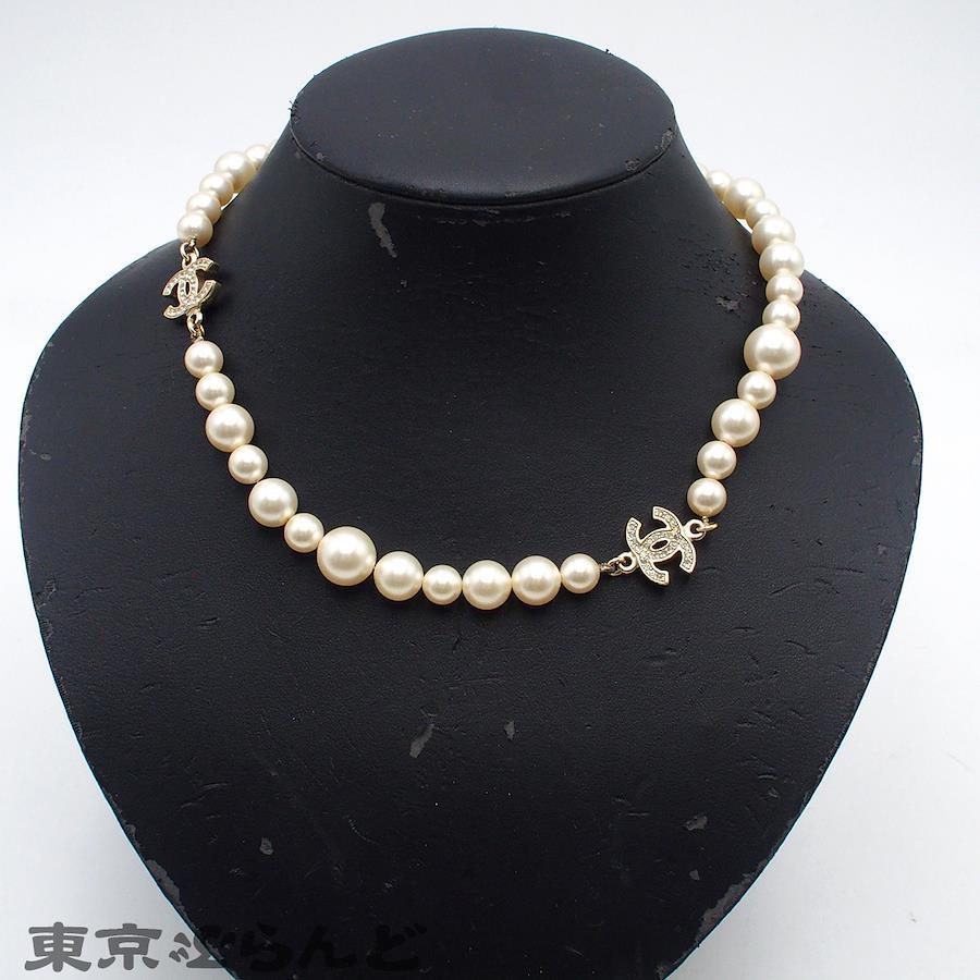 Brand: ChanelProduct Name: Choker, Coco Mark, Faux Pearl, Costume Jewelry, A12ASerial Number: A12AMaterial: MetalSize: Neck Circumference: Approx. 42cmColor: Light GoldAccessories: NoneQuantity: 8Note: There are some scratches on the faux pearl, but overall it is in good condition.