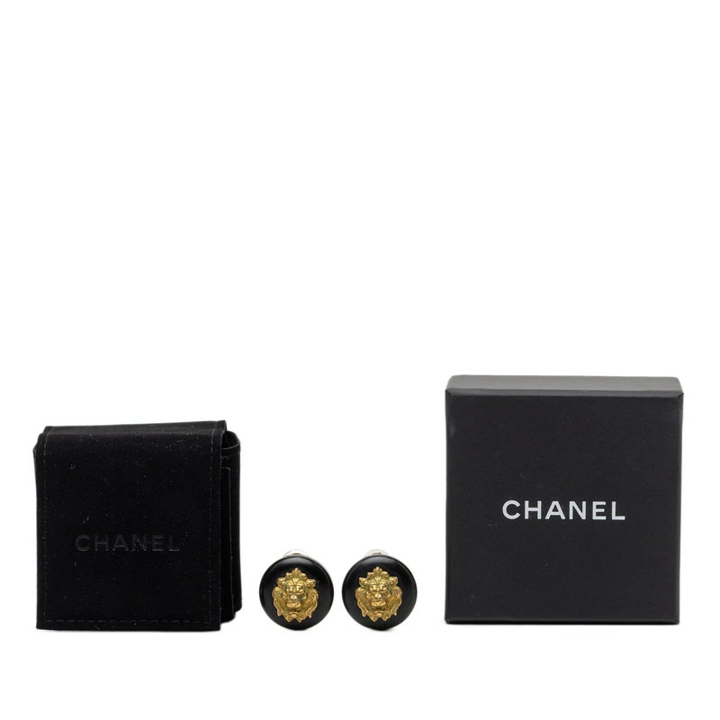 - シャネル ライオン モチーフ イヤリング ゴールド ブラック メッキ レディース CHANEL 【中古】