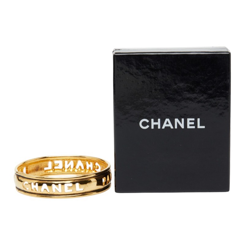 Chanel Logo Bangle, Gold PlatedCHANELBrand: CHANELTarget: Women'sColor: GoldLine: LogoMaterial: PlatedSize: W approx. 1.7cmWrist circumference: approx. 21cmSize cannot be changedAccessories: Original boxCondition Rank: ABOverall: Minor scratches and tarnishing