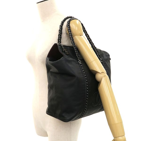 生地にまで埋め込まれたチェーンが特徴的☆シャネルより『ラグジュアリーライン・チェーンショルダー』が入荷いたしました。しなやかで上質なレザーにクールな印象を受けるシルバー金具が相性抜群な一品☆トートバッグとしても非常に使いやすく、必需品程良いサイズ感に加えて、ファスナーポケットやスリットポケットがセットされております。状態はBランクでの入荷になり、型崩れ、表面や角のスレ傷、間口の薄汚れ、金具の小傷、内側のスレ傷やポケットの折り癖がございます。Bランクの状態となりますが、大きく目立つようなダメージは見受けられず、まだまだご愛用いただけます。