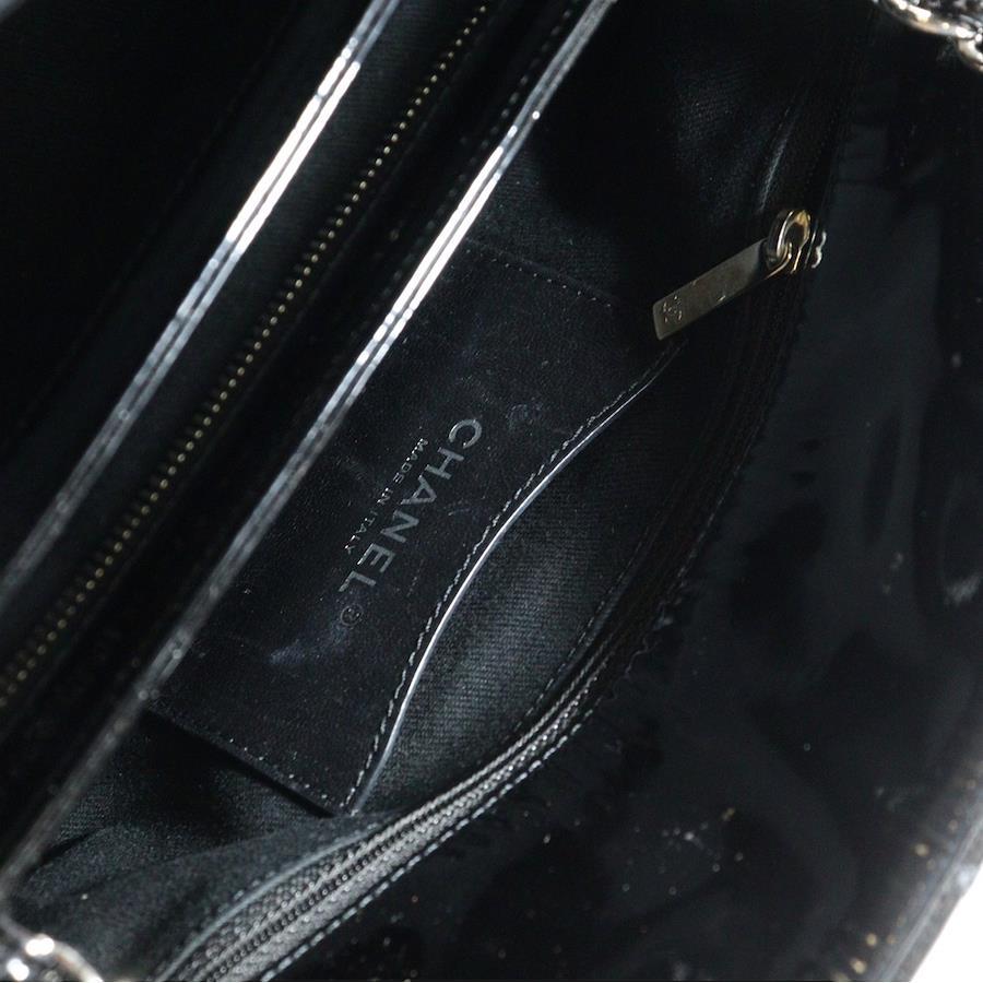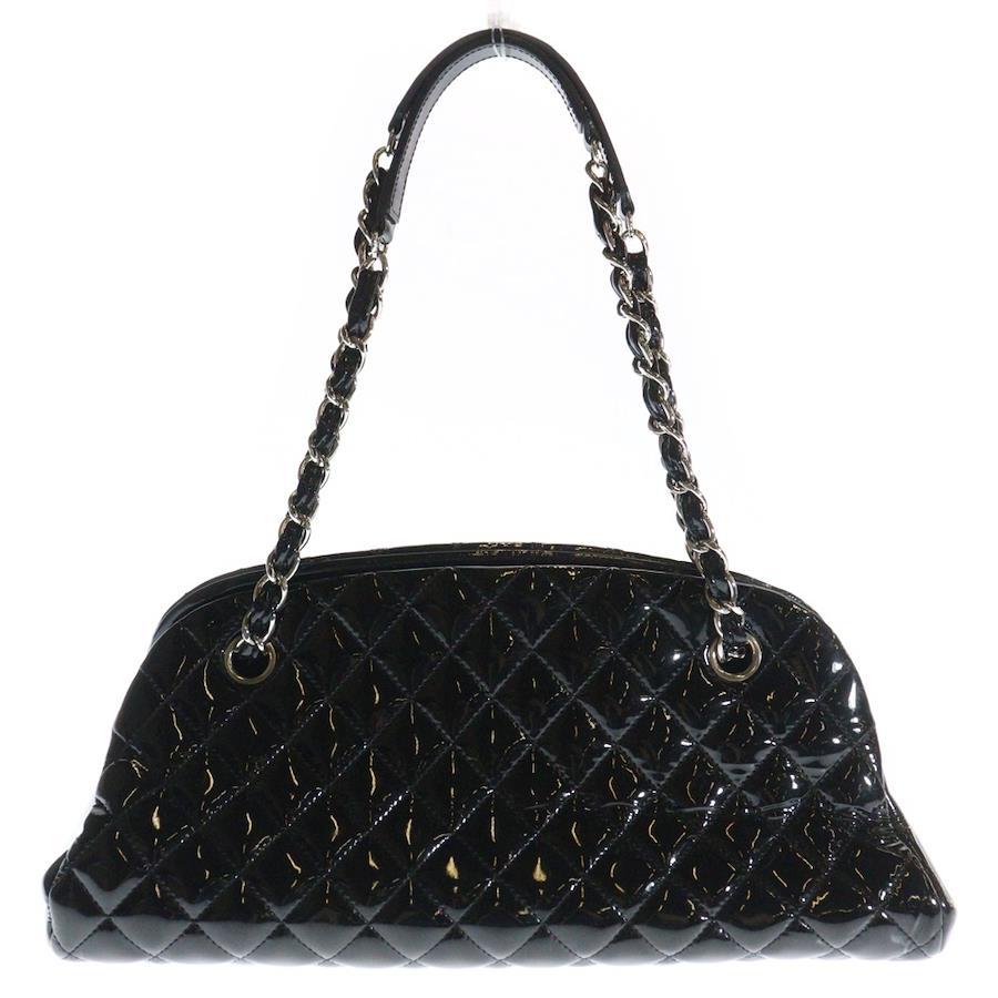 [モデル]マドモアゼル チェーンショルダーバック ハンドバッグ ブラック シルバー金具 パテント レザー