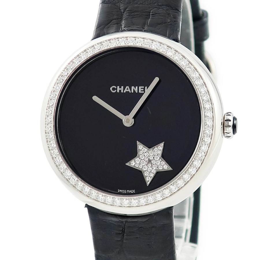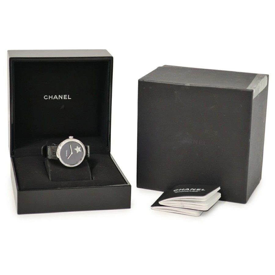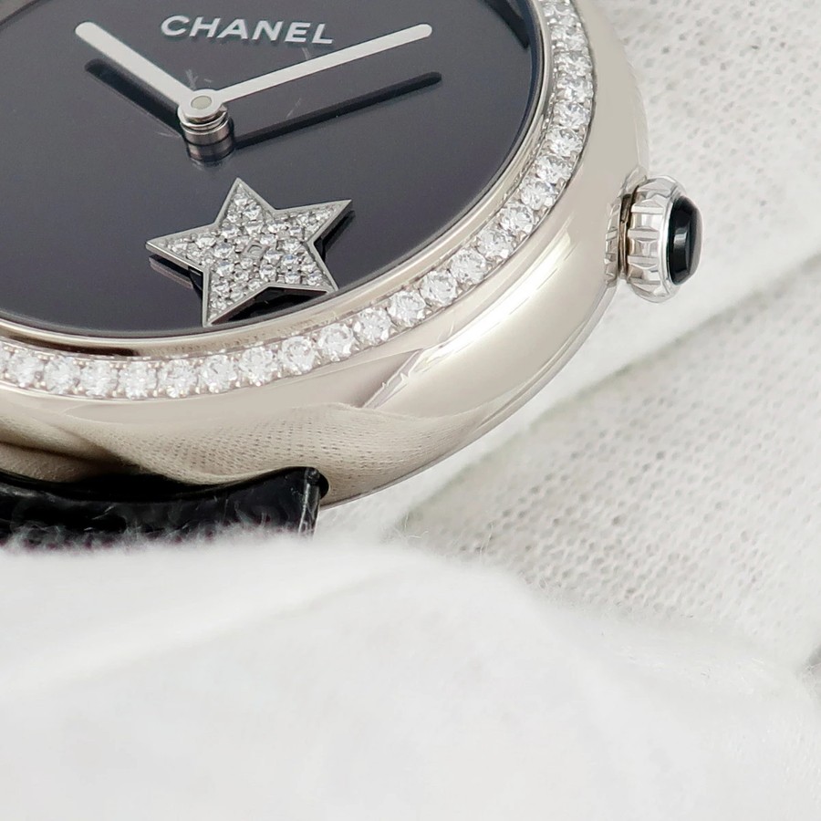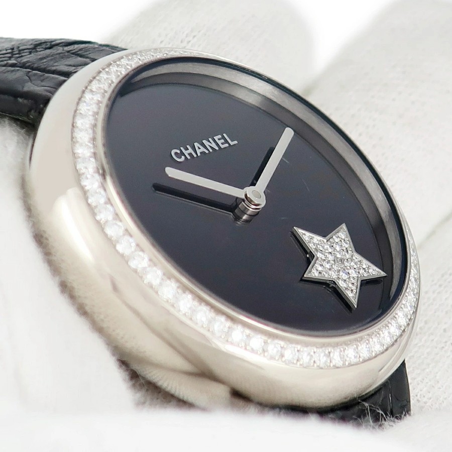 シャネル CHANEL マドモアゼル プリヴェ コメットモチーフ H2928 K18WG無垢 純正ダイヤ 黒 星 メンズ レディース 腕時計自動巻き ブラック 【中古】【店頭受取不可】
