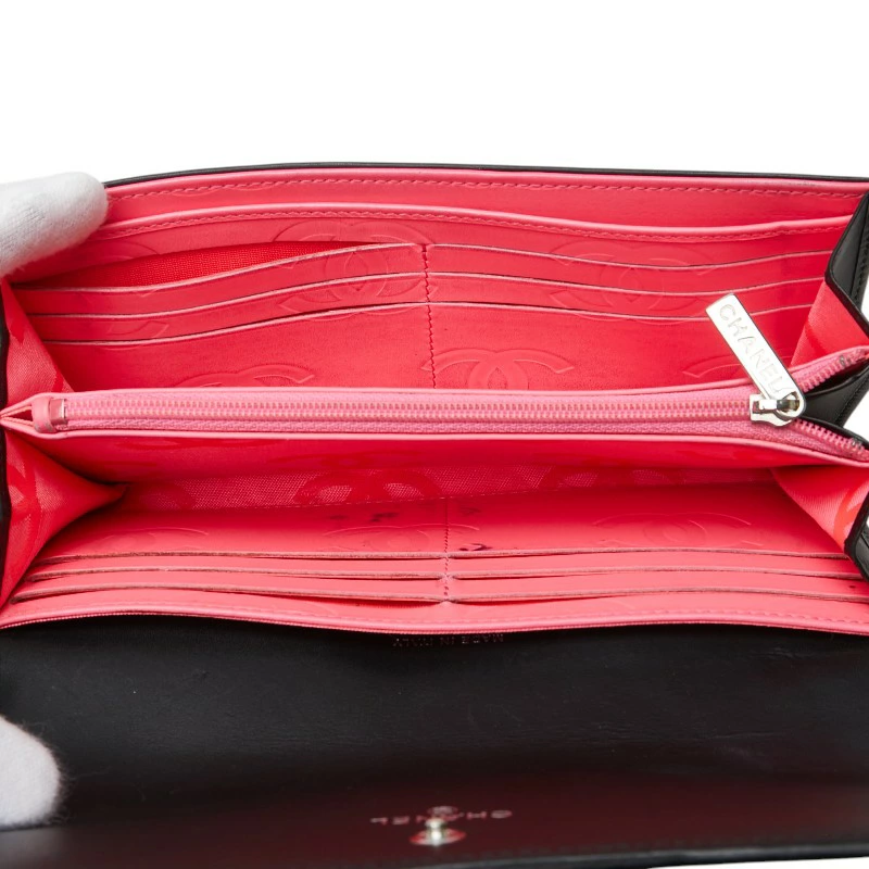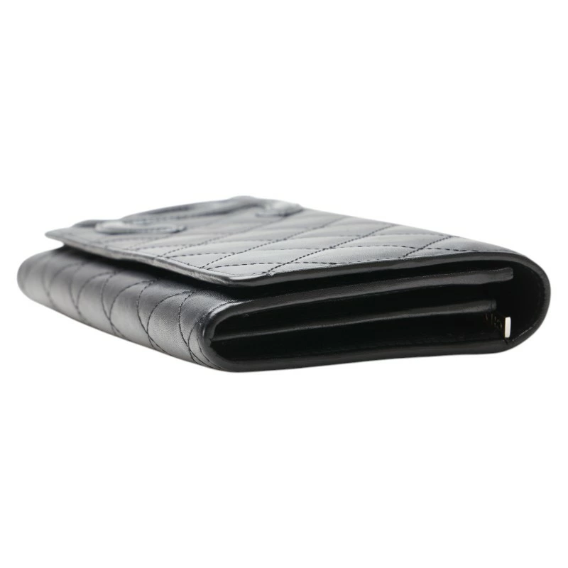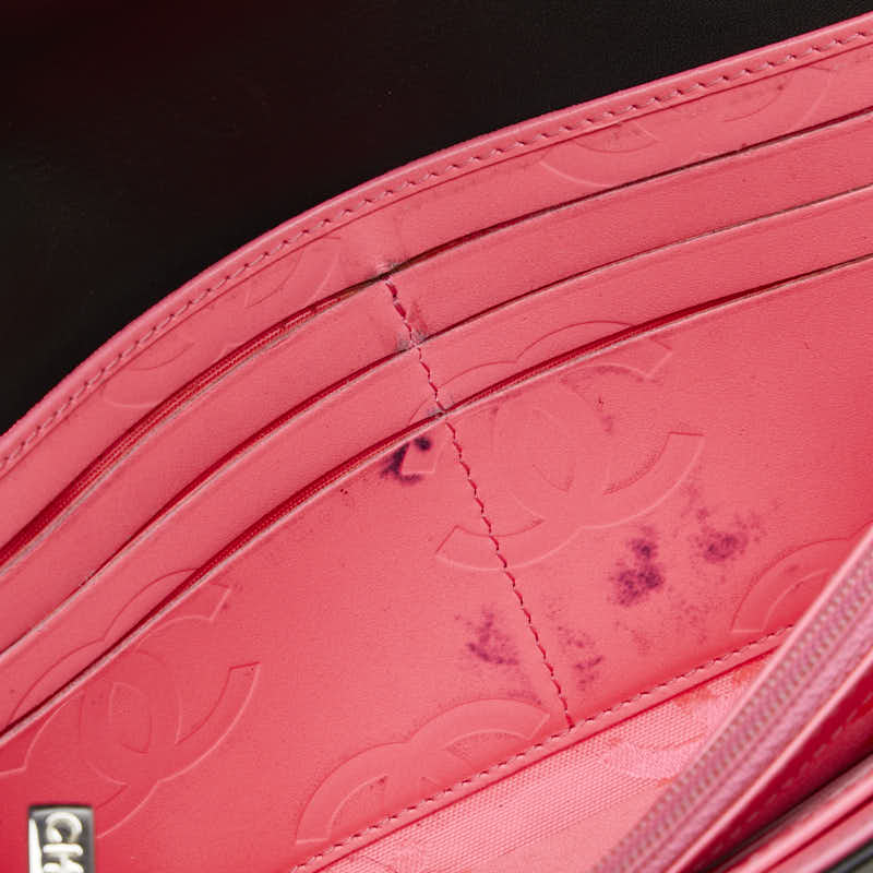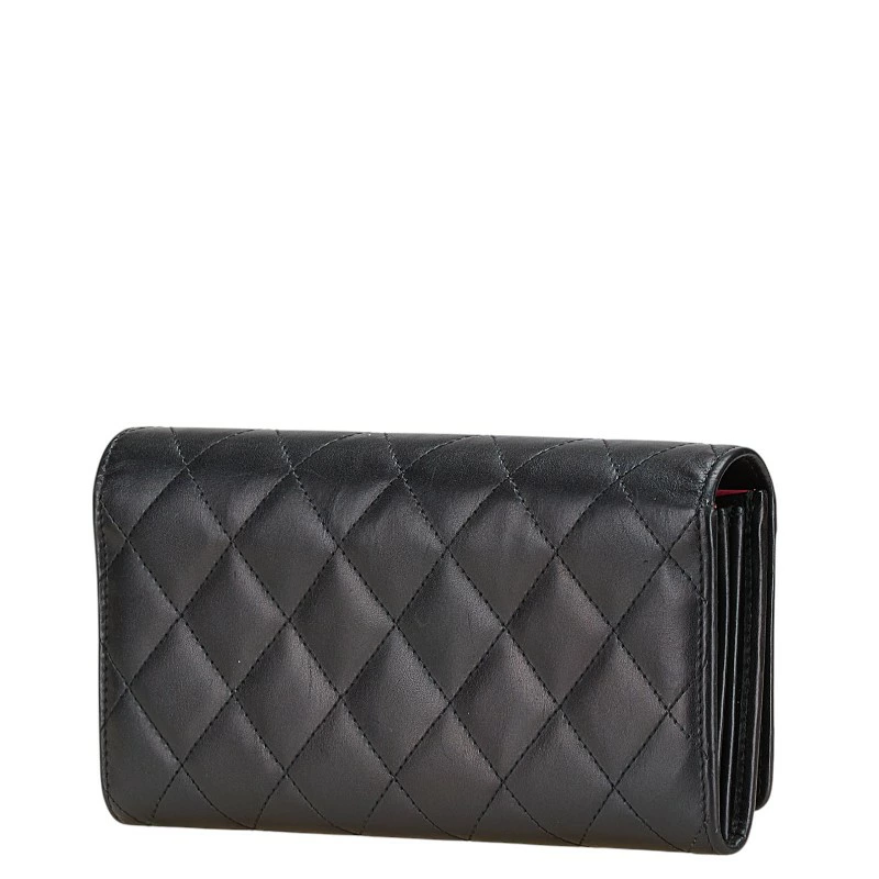 - シャネル マトラッセ 長財布 ブラック ラムスキン エナメル レディース CHANEL 【中古】