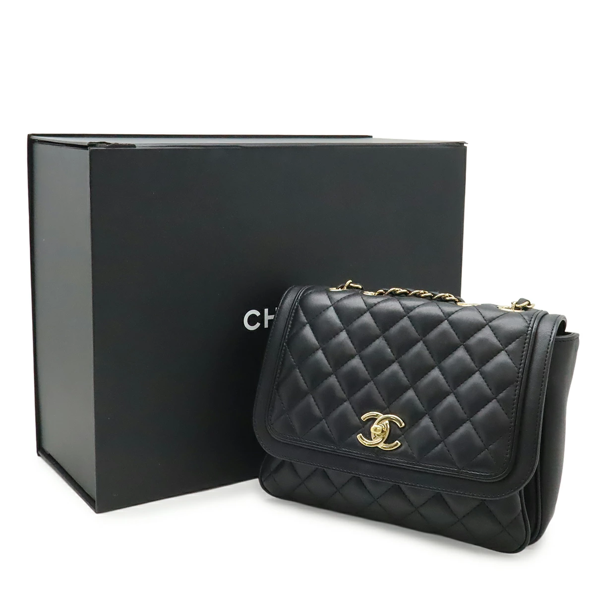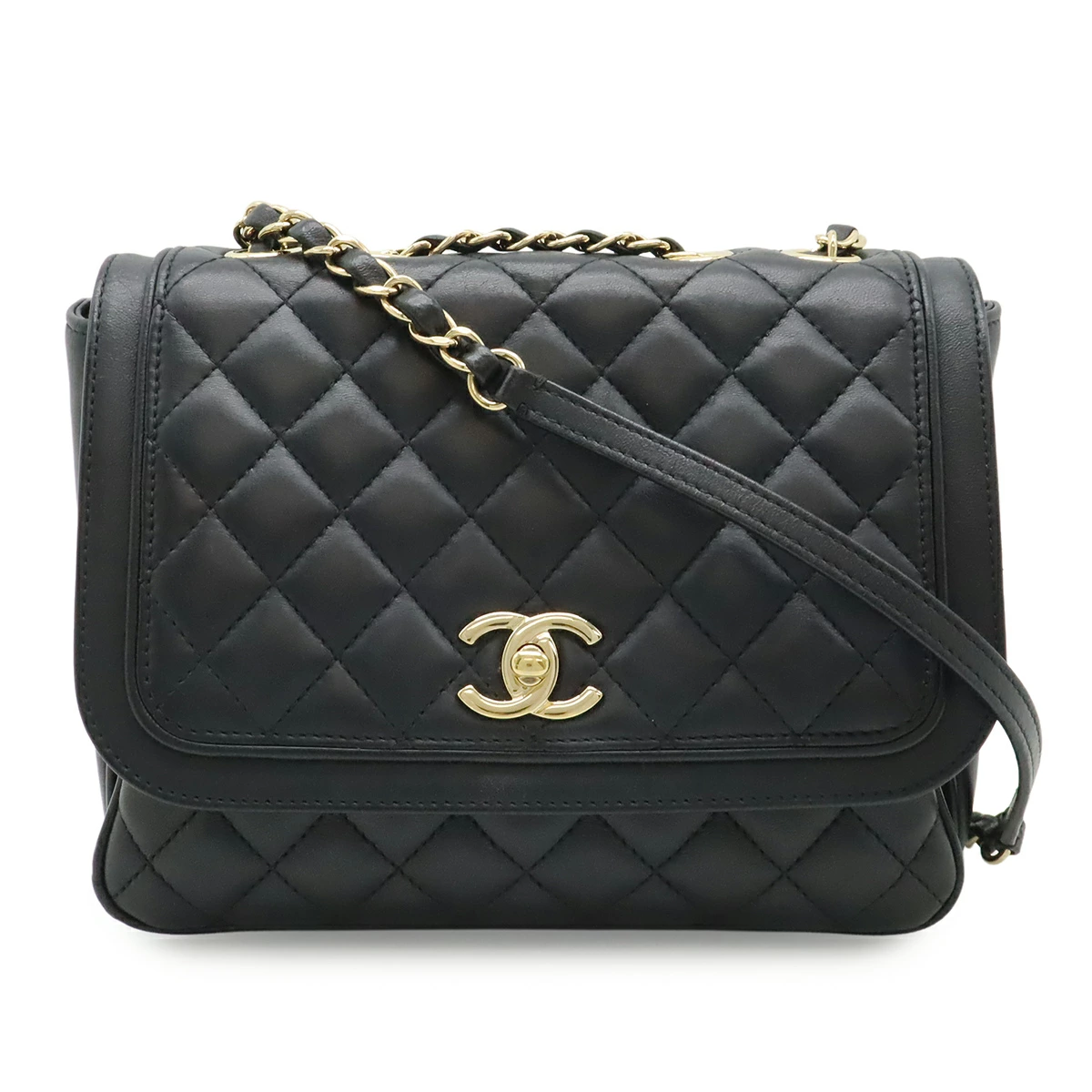 ラムスキンとゴールドのチェーンショルダーの組み合わせがシャネルらしい上品でハイセンスなアイテムです。