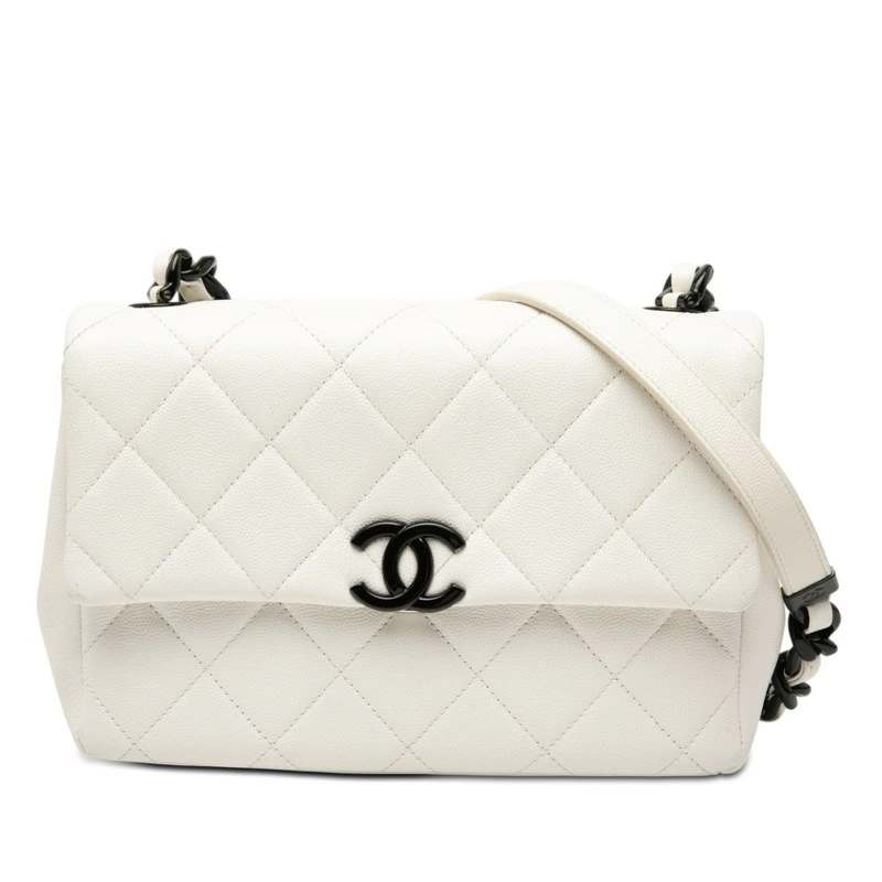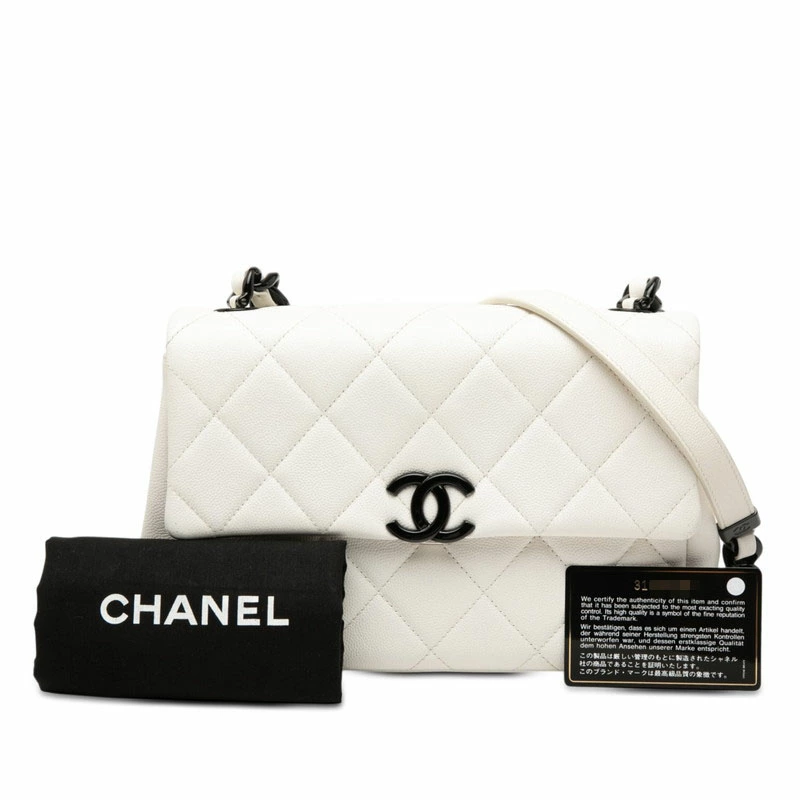 Chanel Matelassé Coco Mark Classic Flap Bag Chain Shoulder Bag AS2302 White Caviar Skin Women's CHANEL [Used]
