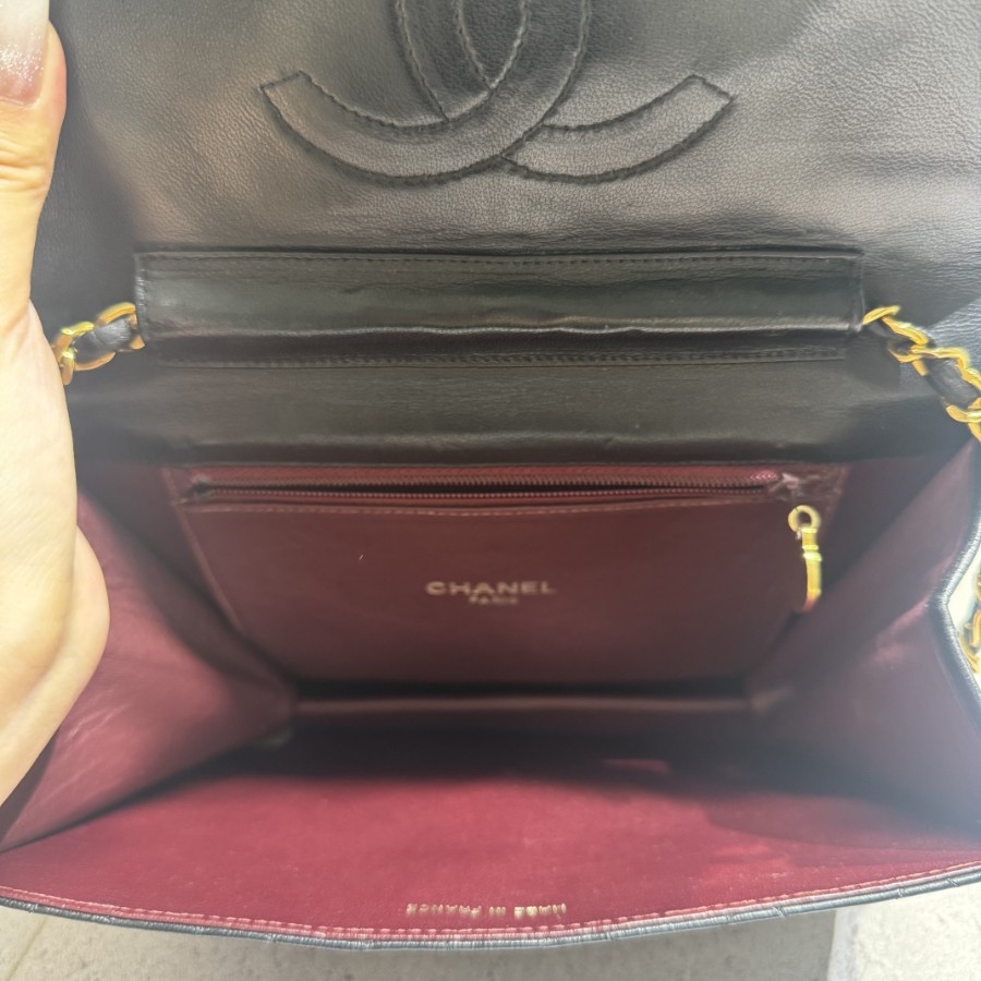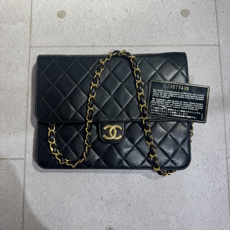 ブランド名:シャネル素材:ラムスキンサイズ:約 H 17.5cm×W 22 cm×D 4 cmチェーン長さ:約 62cm年代:3番台 1994年ー1996年製造付属品:ギャランティカード、シリアルシール状態:Aランク 使用感の少ない綺麗な中古品