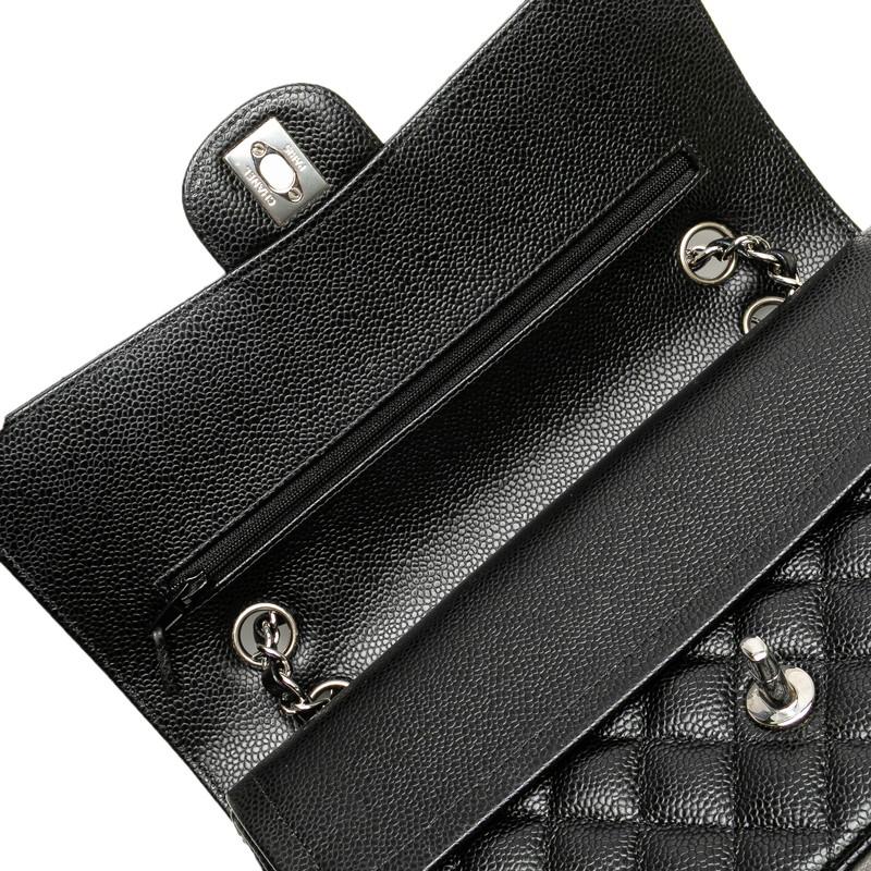 CHANEL Matelasse 25 Double Flap Coco Mark Chain Shoulder Bag in Black Caviar Leather for Women [222-25511]