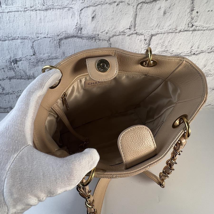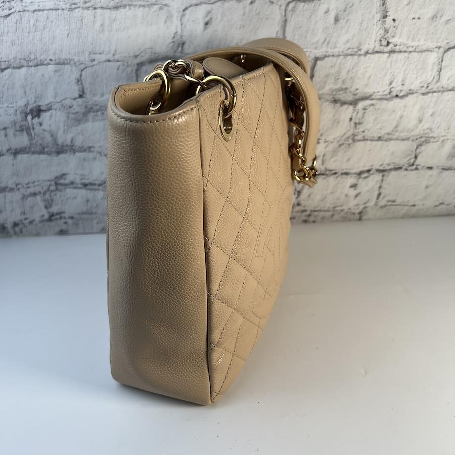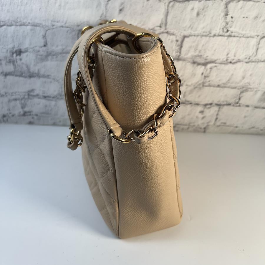 美品 CHANEL シャネル マトラッセ キャビアスキン ショルダーバッグ ベージュ A-8521
