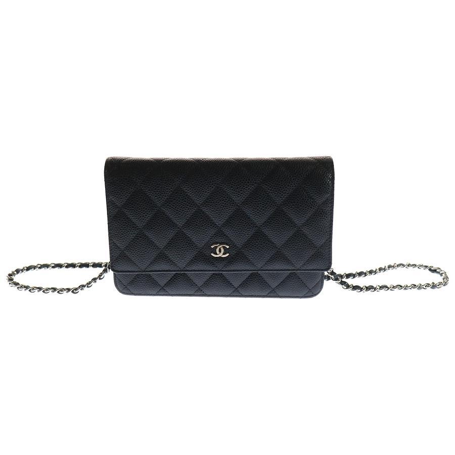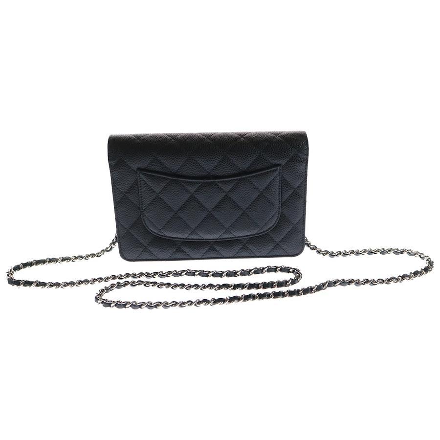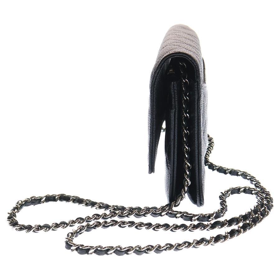 [モデル]マトラッセ チェーンウォレット ショルダーウォレット 財布 ショルダーバッグ ブラック シルバー金具 キャビアスキン AP0250