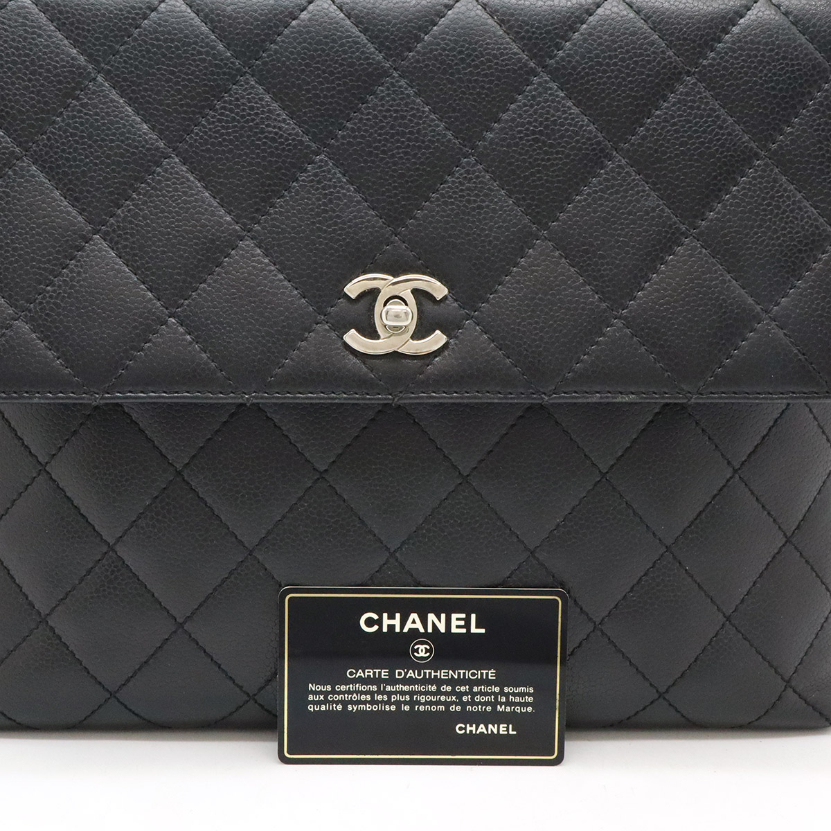 CHANEL Matelasse Coco Mark Handbag, Flap Bag, Caviar Leather, Black, Silver Hardware, A12397
