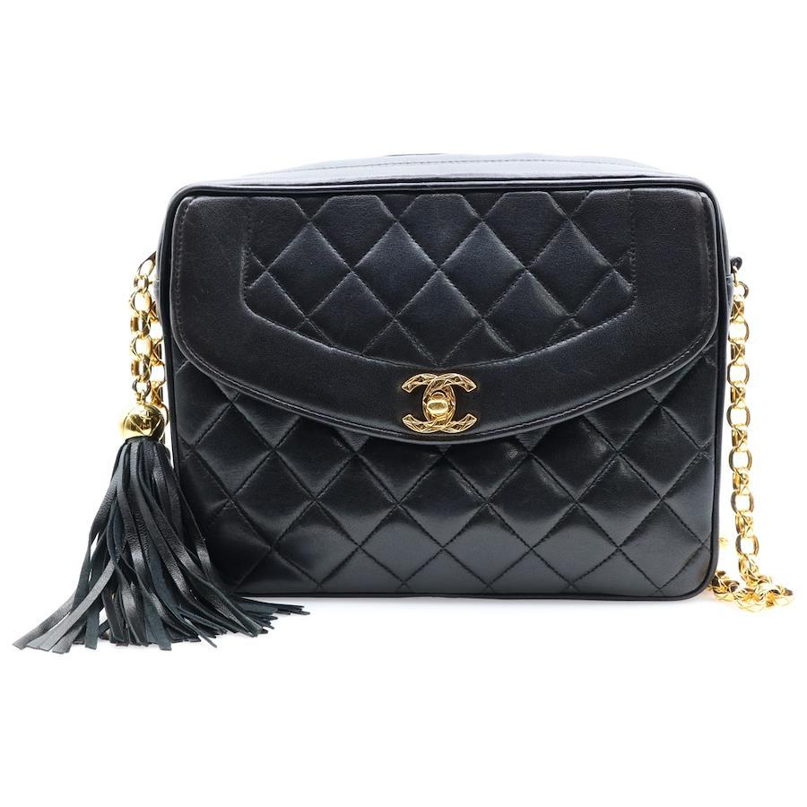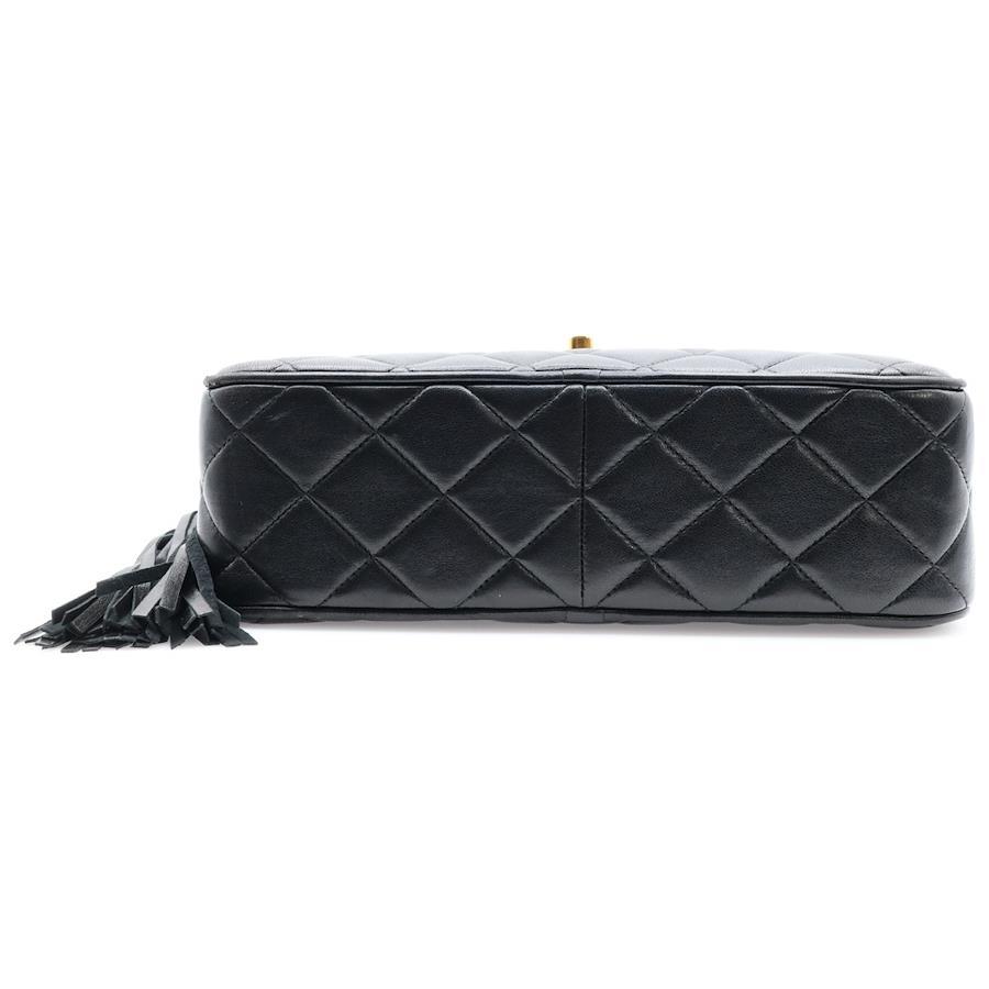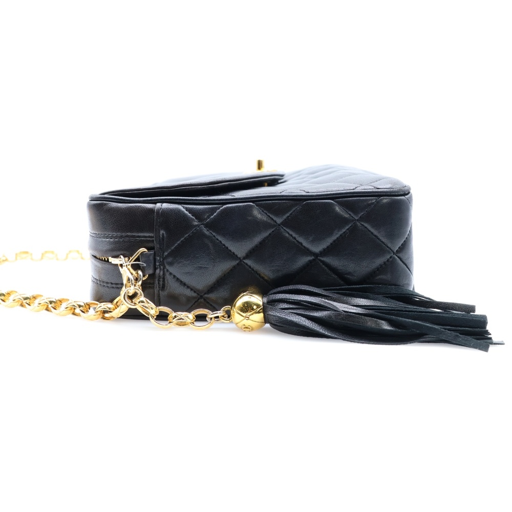 [モデル]マトラッセ フリンジ ダイアナフラップ チェーンショルダーバッグ ブラック ラムスキン ゴールド金具